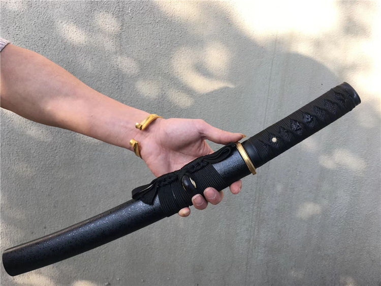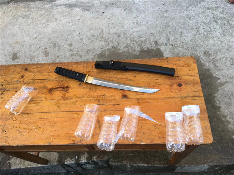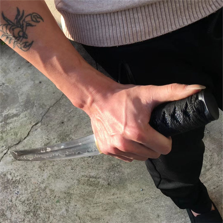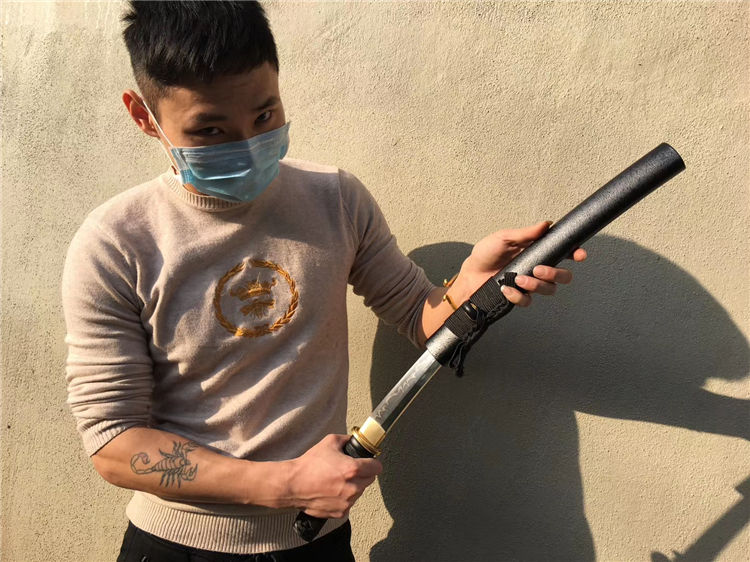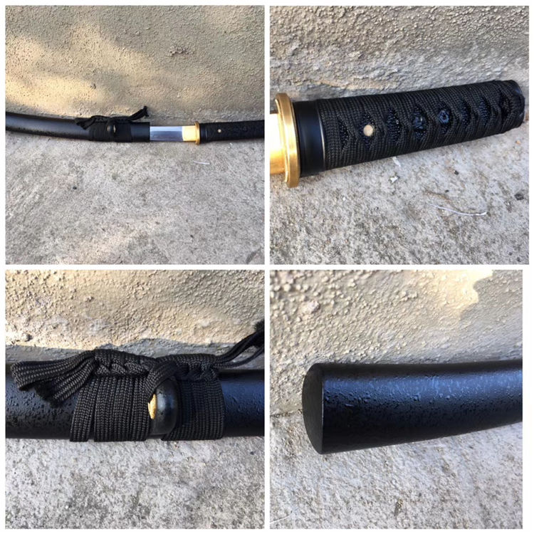 黑煞武士刀 专业测试、请勿模仿 工艺:龙泉古法传统手工艺 装具:铜铁装 刃材:T10烧刃 柄材:实木绕绳柄 鞘材:实木漆鞘 赠品:锦盒、养护油、布