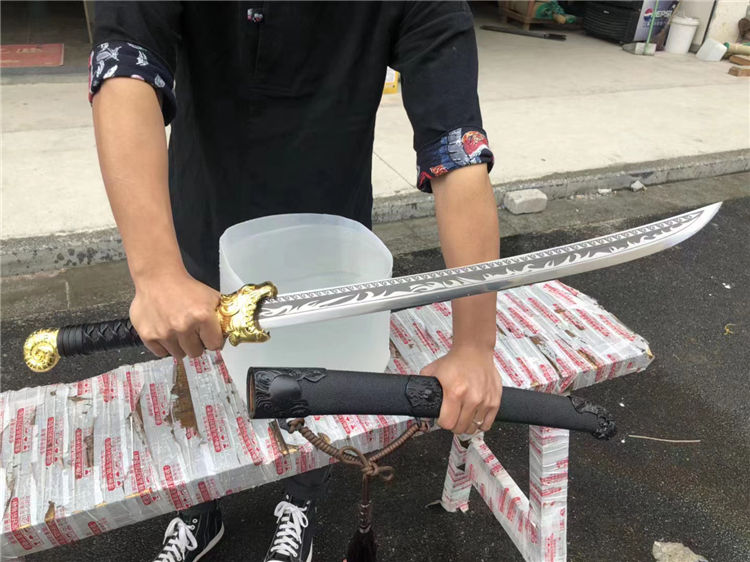 工艺:刀身千锤百炼、经打胚、热锻、铲、锉、磨、热处理(淬火)回火、初修、精修、等龙泉古法数十道手工制作而成