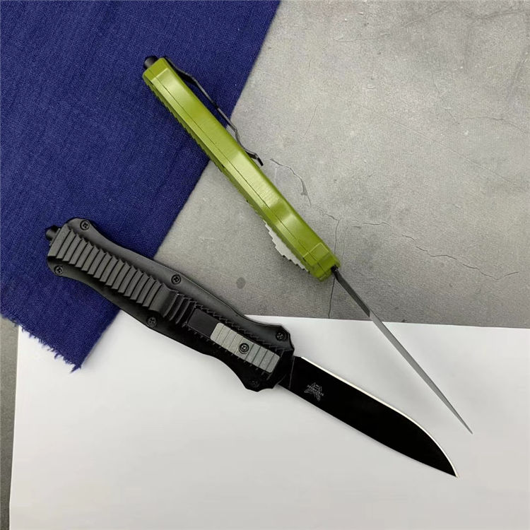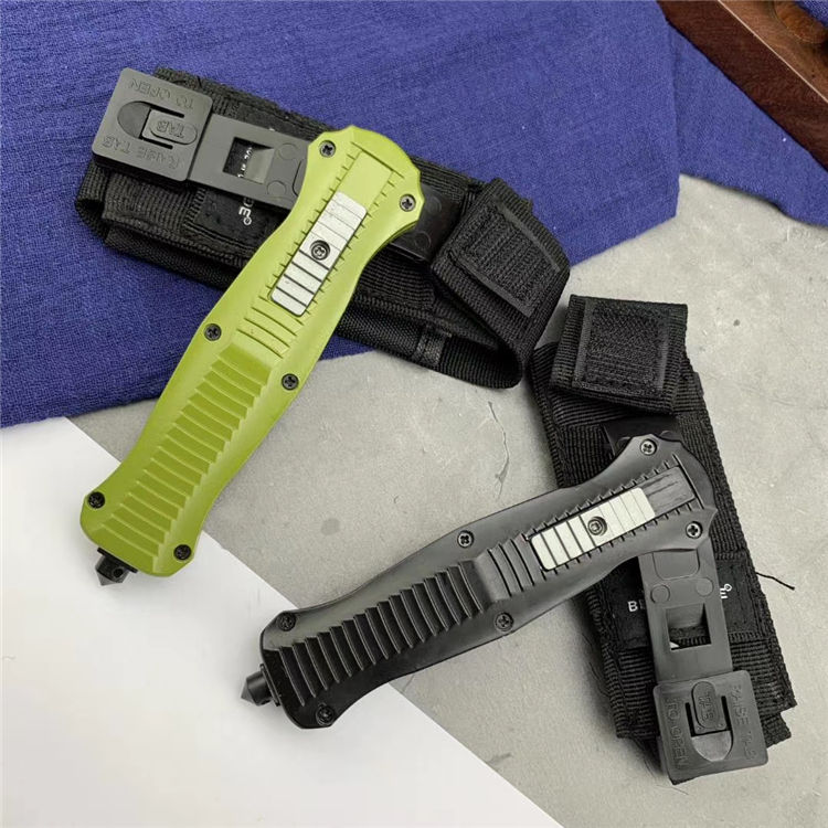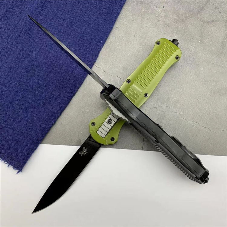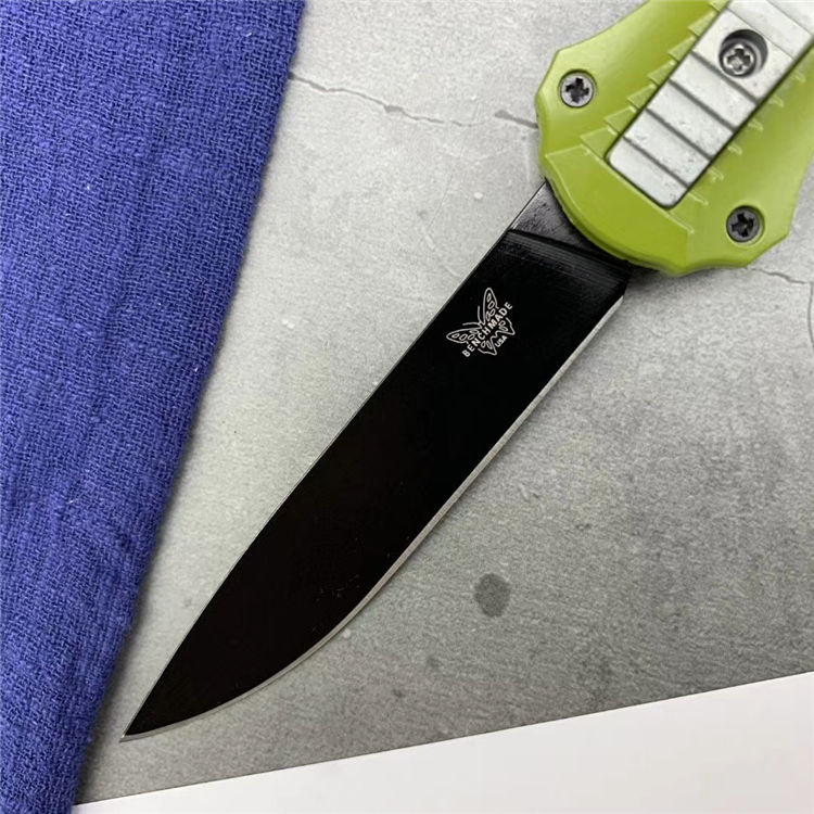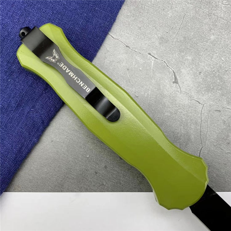 蝴蝶3200单锋直出跳刀 全长:22.6cm 刃长:10cm 刃厚:2.5mm 刃材:440 硬度:58Hrc 表面:钛离子 柄材:合金铝 净重:149g 刀套:科杜拉 锁定:自动锁 类型:中型