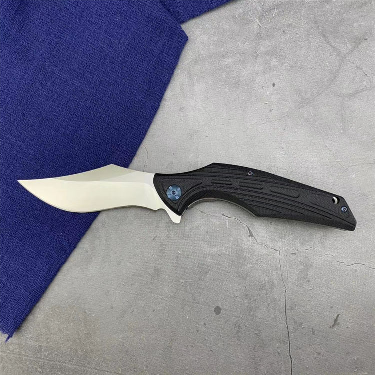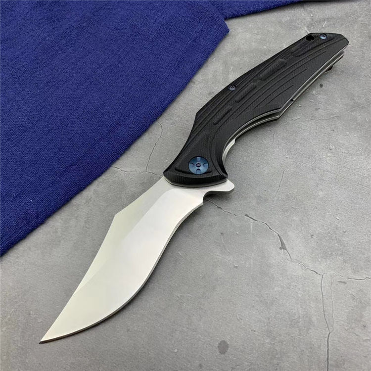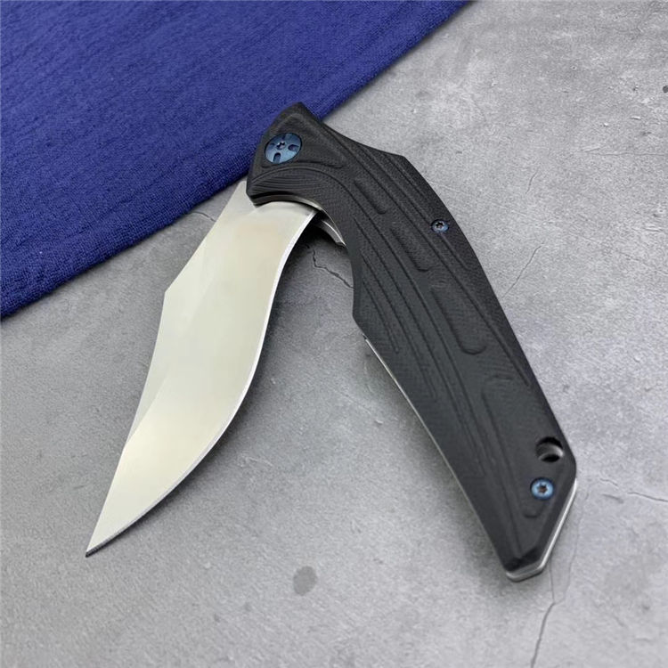 狗虾快开折刀 全长:250mm 刃长:113mm 柄长:138mm 刃宽:3.7mm 刃厚:3.8mm 刃材:9cr18mov 重量:281g(含包装) 硬度:57-58HRC 表面:沙光 柄材:手柄钢片+黑G10经CNC加工 螺丝:所有的螺丝420不锈钢