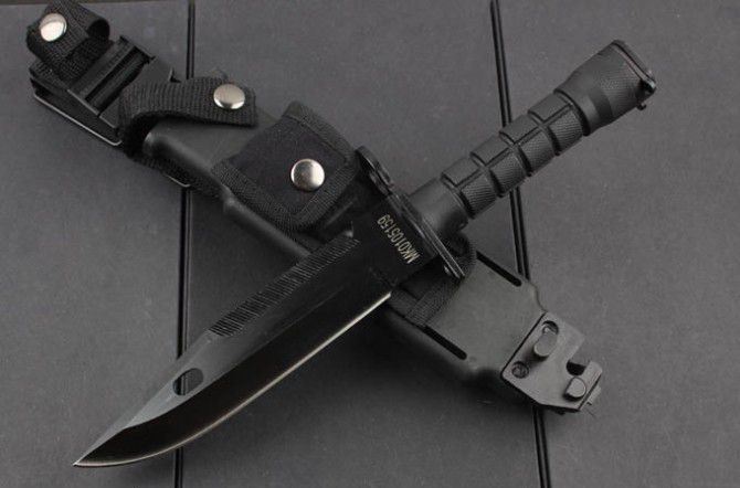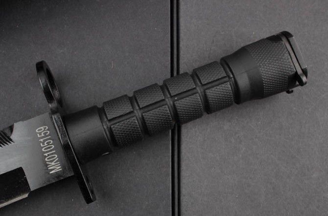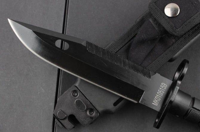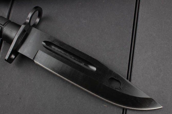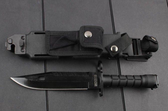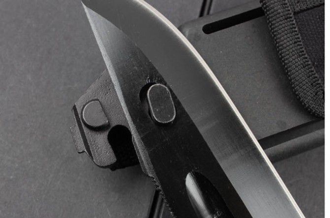 外贸黑版M9(可拆卸)全刃 全 长:31cm 刃 长:18.2cm 刃 厚:6mm 刃 材:5CR13 硬 度:58HRC 表 面:高温喷漆 柄 材:ABS 刀 鞘:ABS
