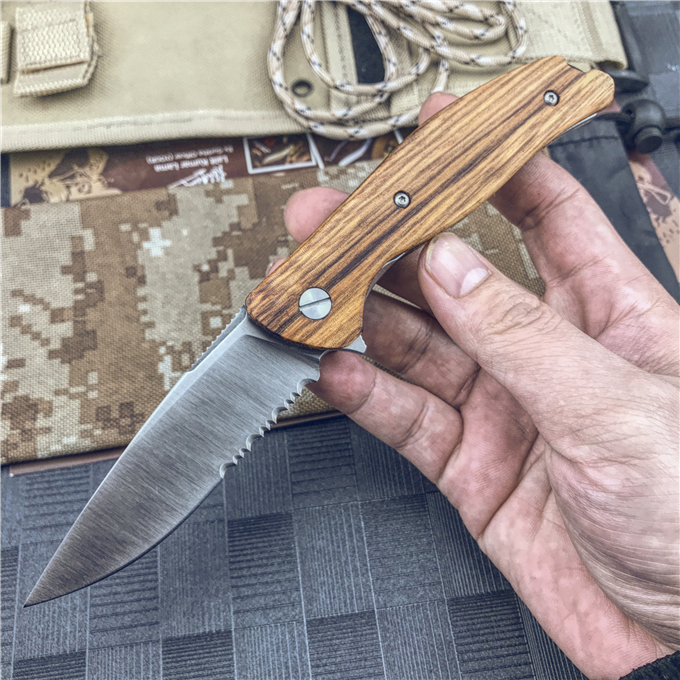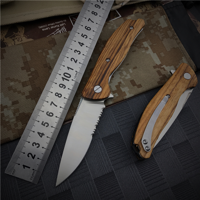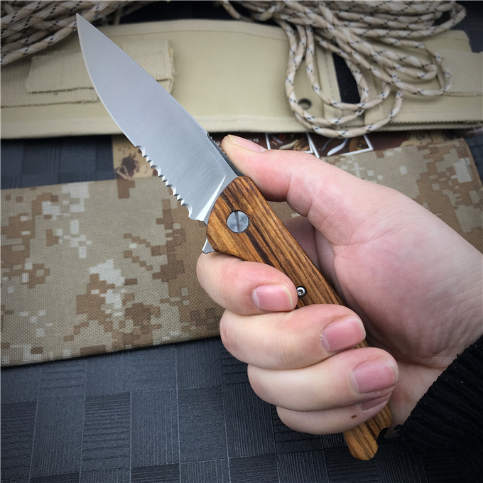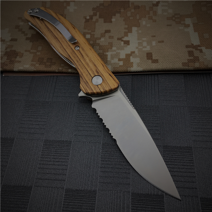 代工版熊头1810S折刀 类型:轴承快开 总长:195mm 刃长:88mm 刀刃:D2(假一罚十) HRC:60±1o 刃厚:3.0mm 手柄内衬:2.0mm不锈钢减重内片 手柄:进口斑马木 重量:97g