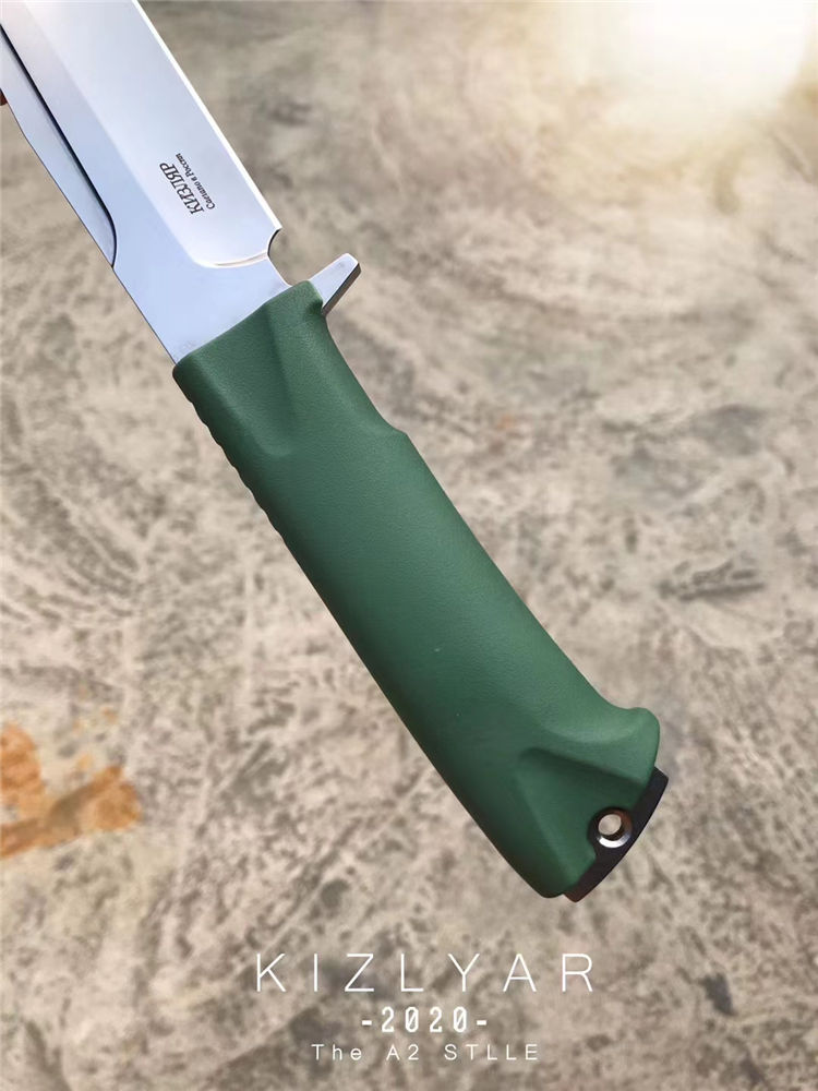 代工俄罗斯特种部队绿柄版克服2直刀 总长:291mm 刃长:150mm 刃厚:5mm 刃宽:31mm 钢材: A2进口特钢,耐腐蚀碳素工具钢,相当于美国CPM154钢 硬度:60HRC保证有足,不低于60,支持专业设备测试硬度与钢材分析,专业真空热处理 重量:265克含鞘342g 产地:俄罗斯授权中国地区代工OEM 皮套:成型头层真牛皮套黑色,配迷彩外包装袋 包装:简约黄包装盒子