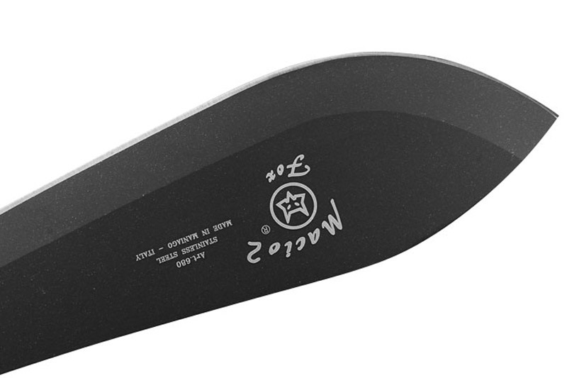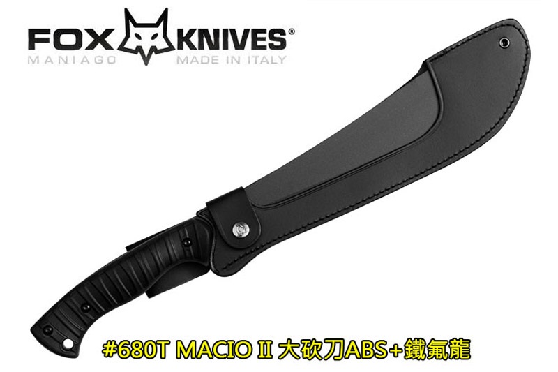 意大利狐狸FOX680T排障砍刀 全 长: 445mm 刃 长: 290mm 刃 材: 1.4116不锈钢 表 面: 特氟龙涂层 刃 厚: 3.6mm 刃 鞘: 皮 柄 材: ABS 重 量: 464g 原产地: 意大利