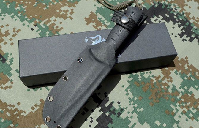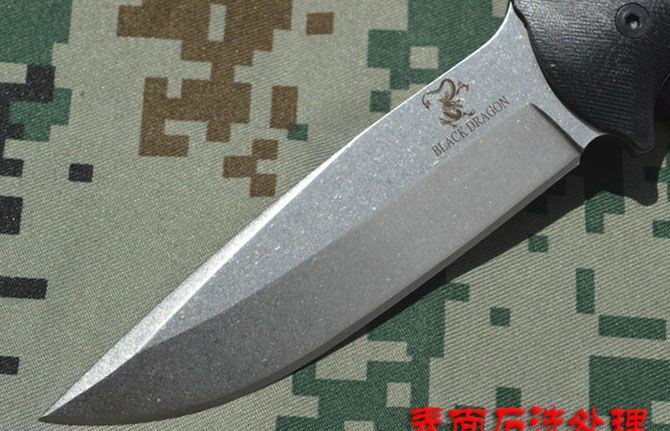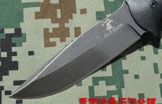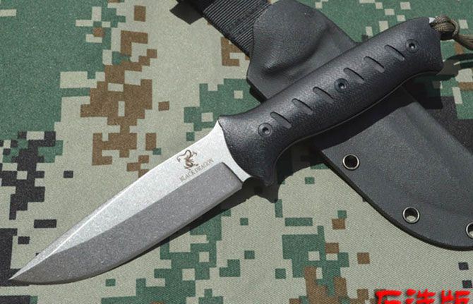 黑龙版绅士小直刀 全长:25cm; 刃长:12cm; 刃厚:0.5cm; 刃材:AUS-10A; 表面:丝光石洗/沧桑石洗; 手柄:黑色G10,CNC加工成型; 热处理:真空油淬热处理; 硬度:60HRC; 开刃方式:水冷; 附件:进口Kydex鞘