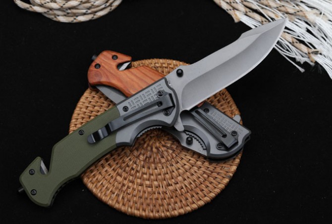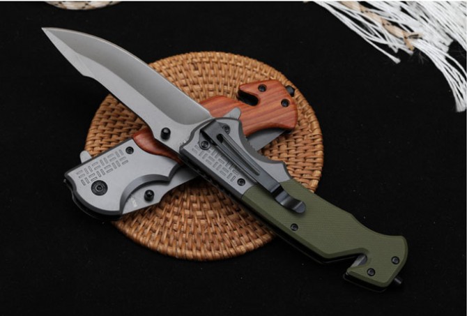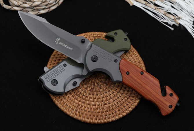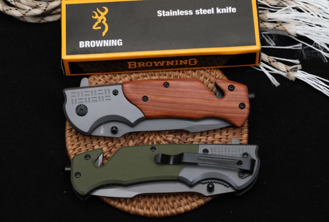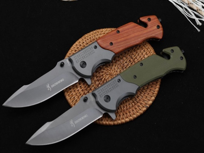 勃朗宁DA308快开折刀 全长:22.8cm 刃长;9.5cm 柄长:12.5cm 刃宽:2.9mm 刃厚:0.26mm 刃材:440C 重量:209g(含包装物) 硬度:58HRC 表面:灰钛真空镀钛处理 柄材:钢+G10 锁型:线锁 其他:配彩盒