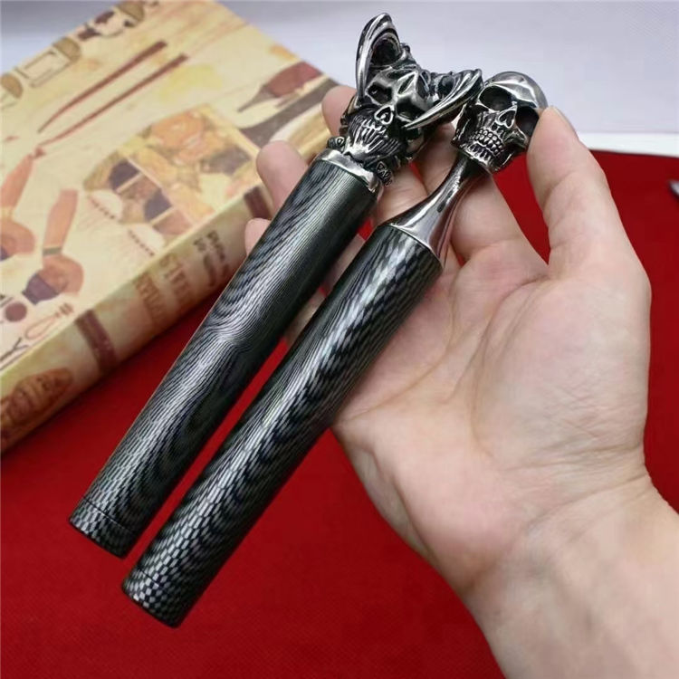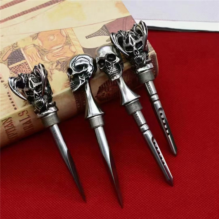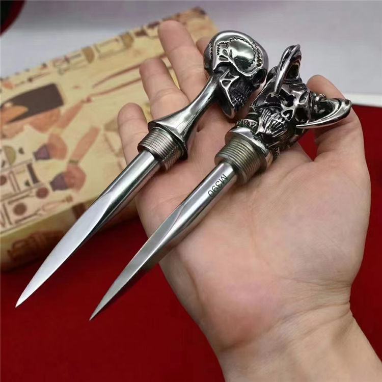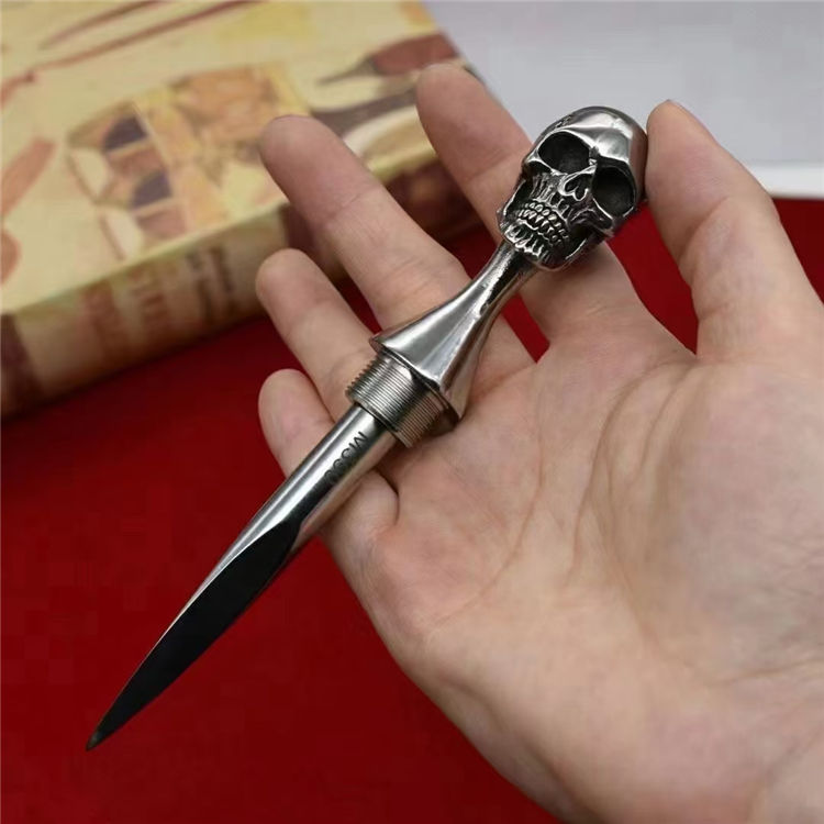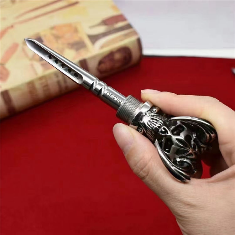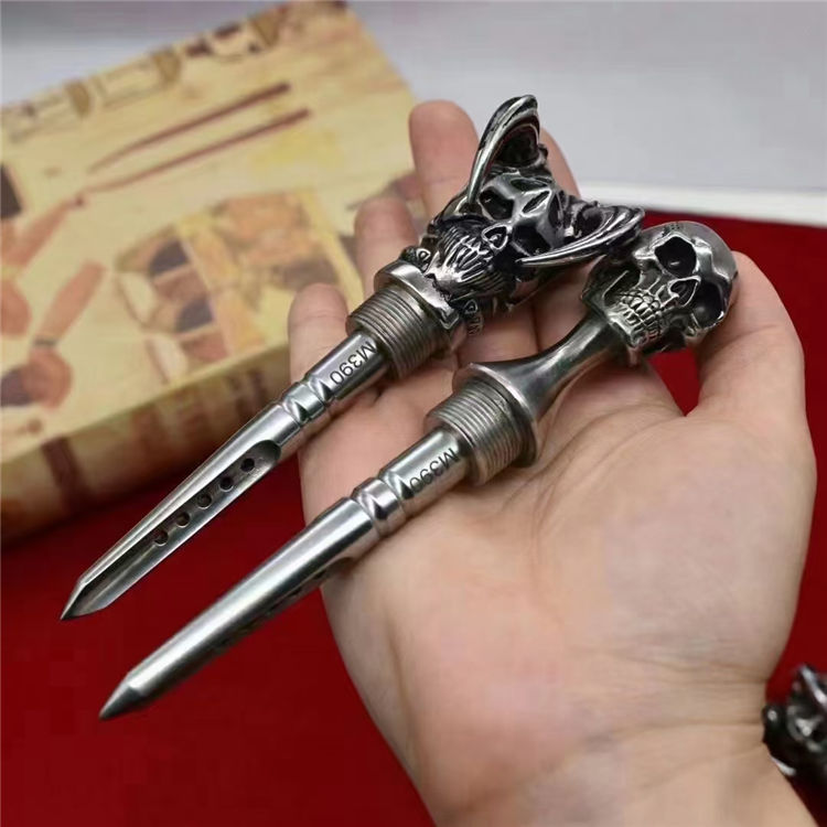 M390魔王三棱突击刺 全长:13.2CM 刃长:7.7CM 柄材:316不锈钢 硬度:61-62HRC真空热处理 刀鞘:T6航空铝 重量:217G