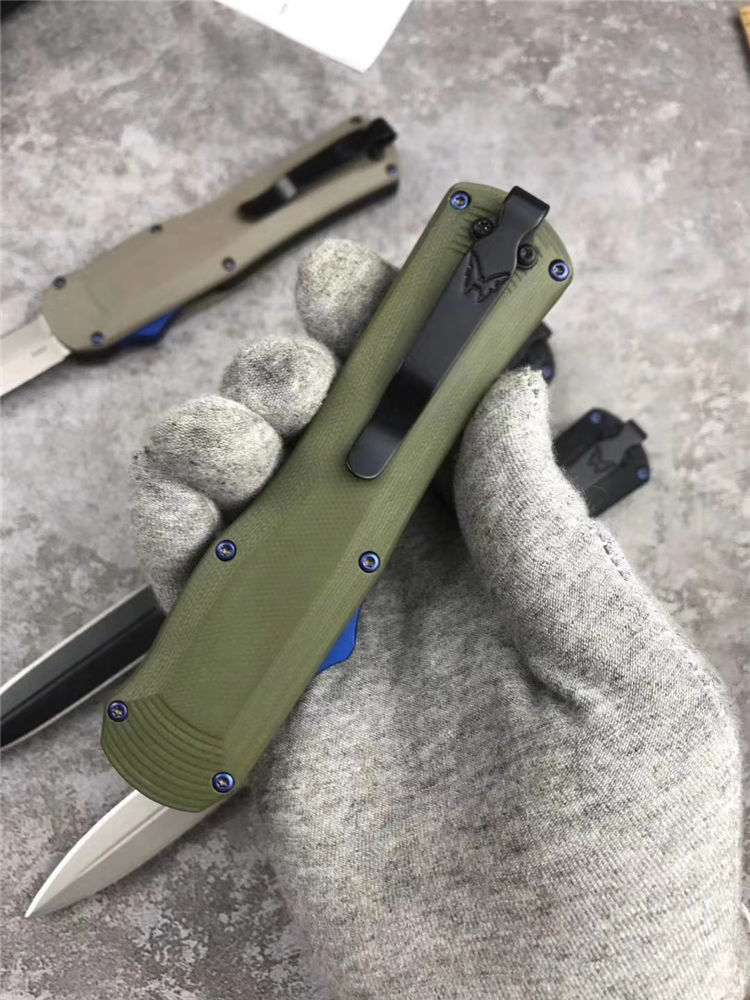 蝴蝶3400独裁者直出跳刀 全长:220mm 刃长:90mm 柄长:128mm 刃宽:1.8cm 刃厚:2.8mm 表面:镀钛消光处理 刃材:CPM S30V 柄材:G10复合材质 硬度:59-60 (超高硬度,非常锋利) 净重:120g 重量:188.8g(含包装) 附件:原装黑彩盒说明书绒布袋