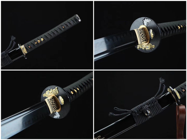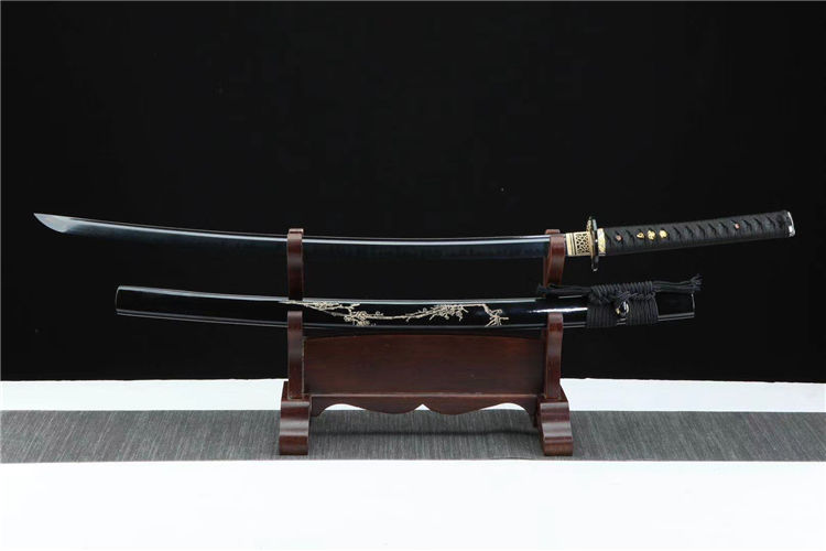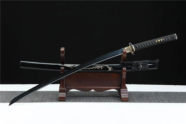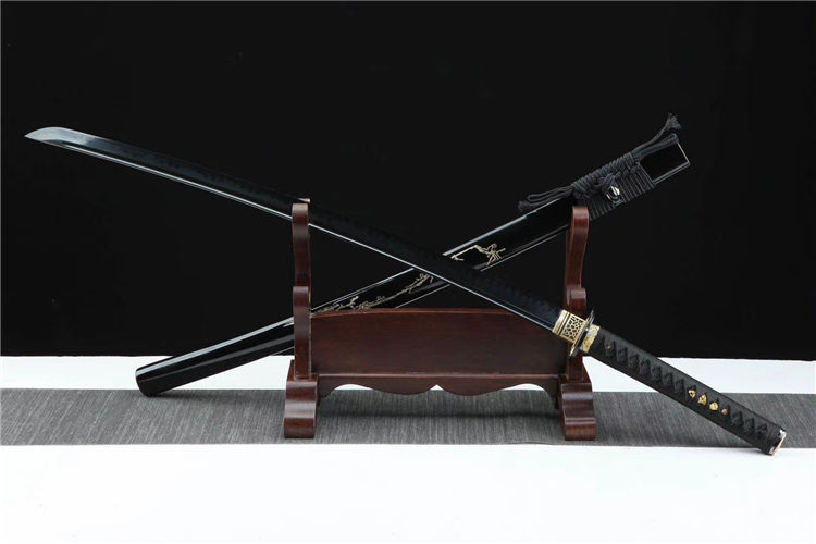 黑翼武士刀 工艺:龙泉古法传统手工艺 装具:铁装 刃材:1095钢烧刃发黑 柄材:实木绕绳柄 鞘材:实木漆鞘 赠品:精美锦盒、养护油、布