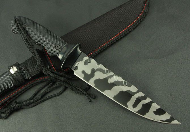全 长:320mm 刃 长:178mm 柄 长:125mm 刃 宽:35mm 刃 厚:3.8mm 刃 材:3Cr13Mvo 重 量:310g(含包装) 硬 度:55HRC 表 面:氧化虎纹 柄 材:ABS 锁 型:定锁 其 他:配尼龙套