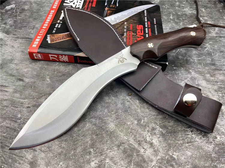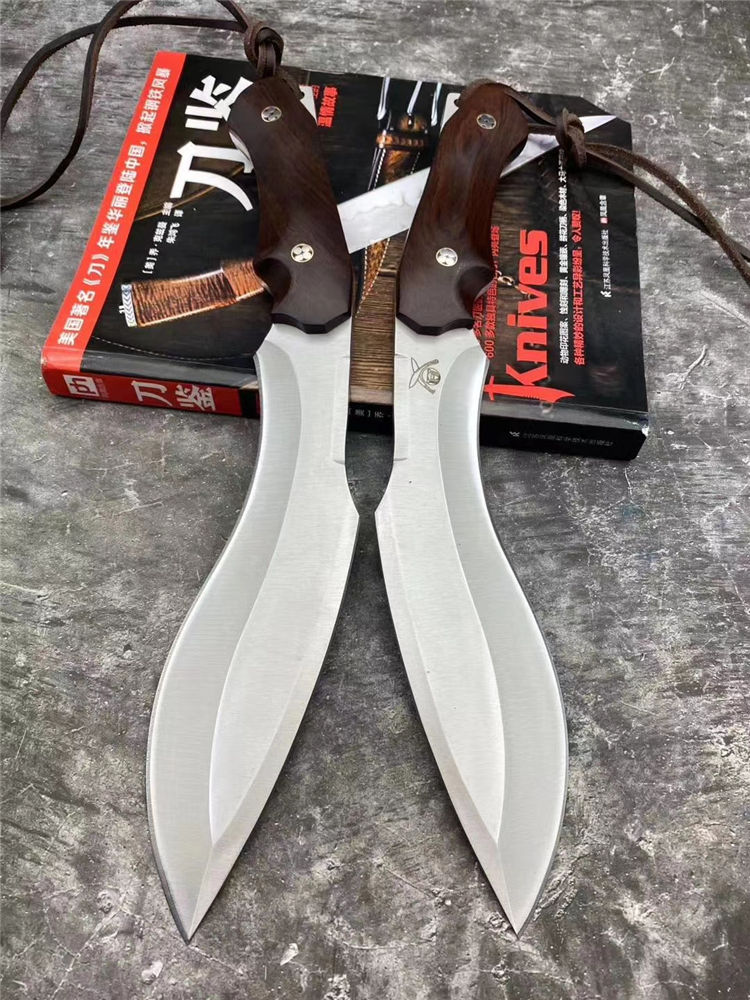 天赐狗腿弯刀 全长:32CM 刃长:19CM 柄长:13CM 刃厚:0.5CM 重:460克 刃材:8cr13 硬度:60
