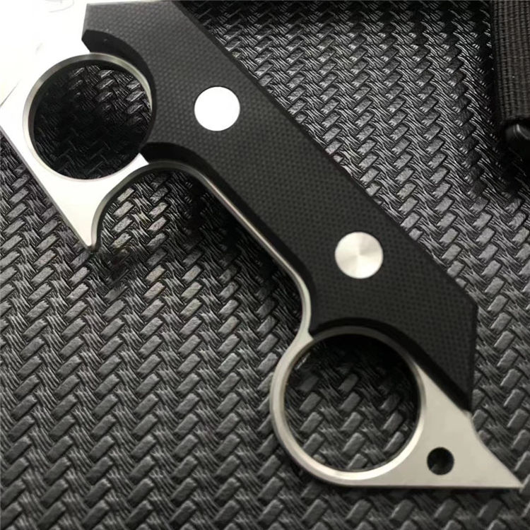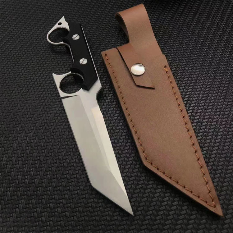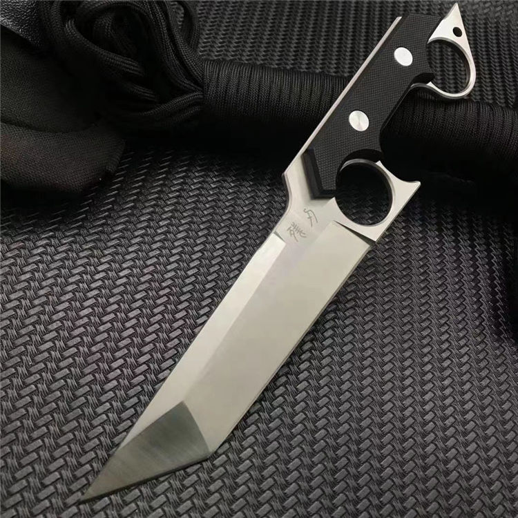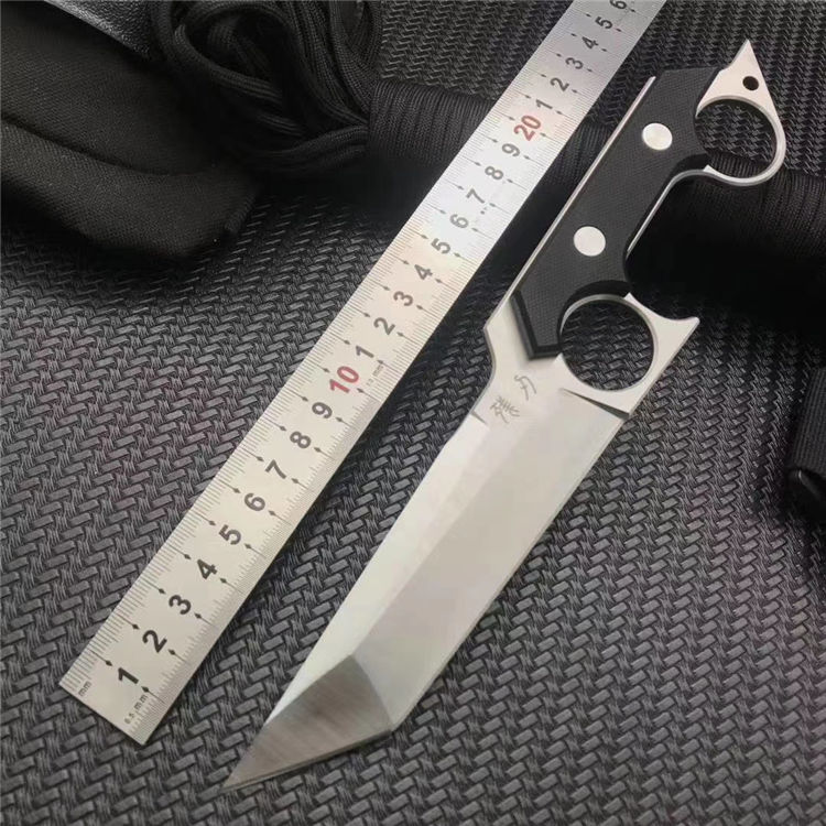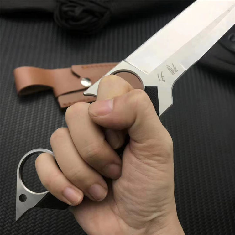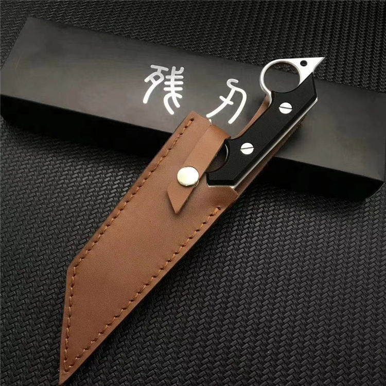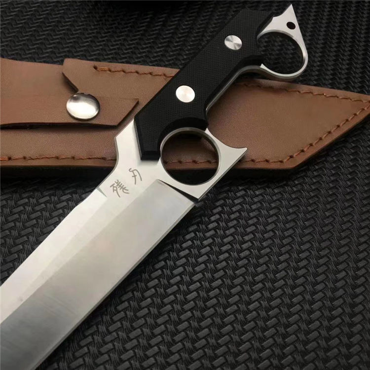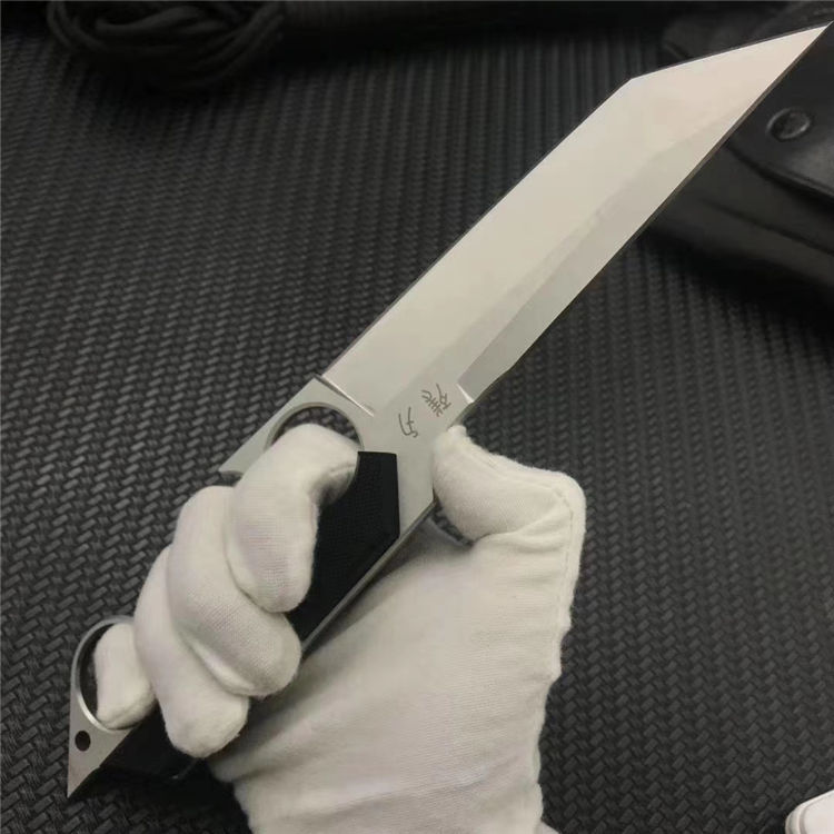 残刃鬼眼直刀 全长:26cm 刃长:13.5cm 柄长:11cm 刃宽:3.5cm 刃厚:0.4cm 刃材:7Cr15Mov 净重:227g 硬度:57HRC 表面:砂光+拉丝 柄材:一体钢+G10 包装:皮套+高档礼盒