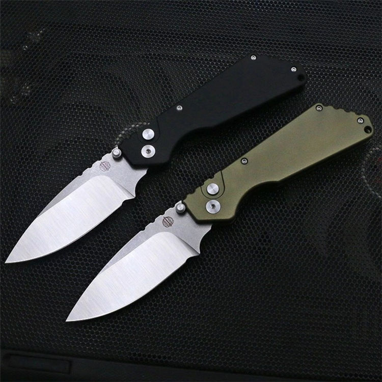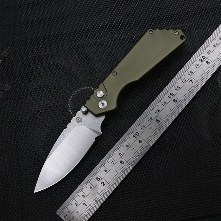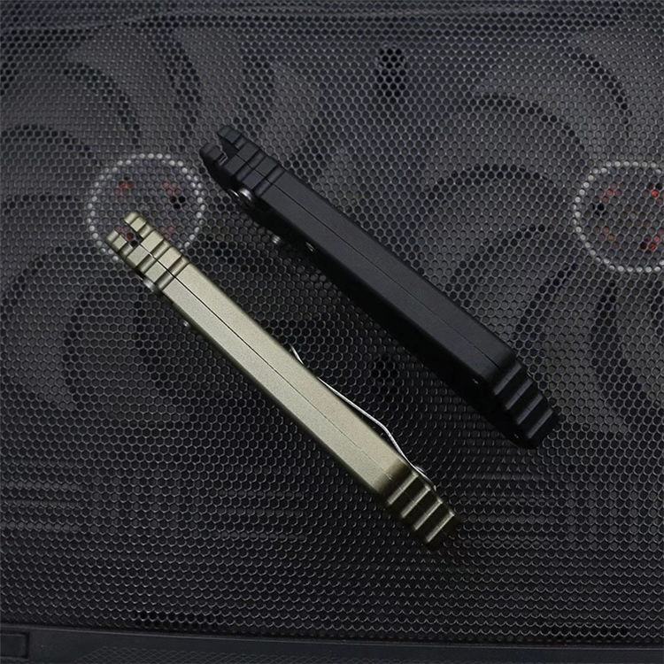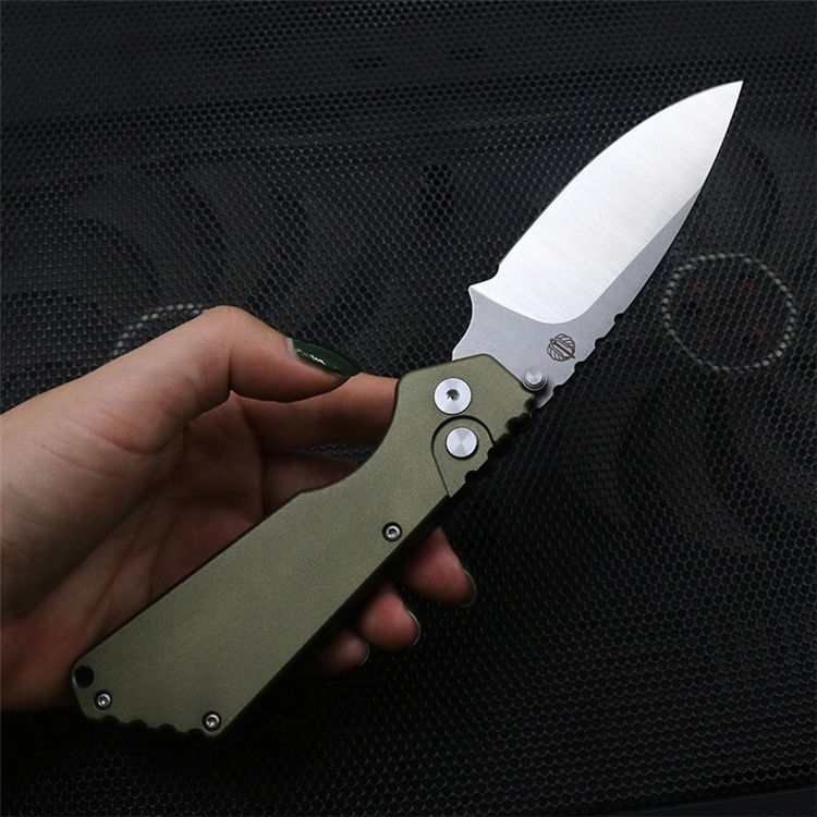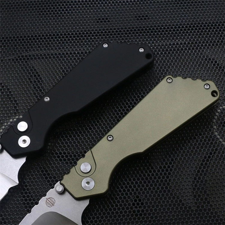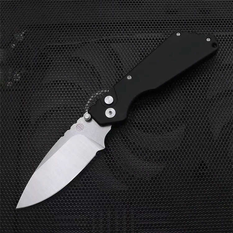 挺进者超技术合作款坦克侧开跳刀 全长:20.5cm 刃长:7cm 刃长:9cm 柄长:11.5cm 厚度:3mm 表面处理:石洗+砂光 材料:D2(HRC60) 柄材:航空铝 打开方式:按钮侧跳 净重:118g
