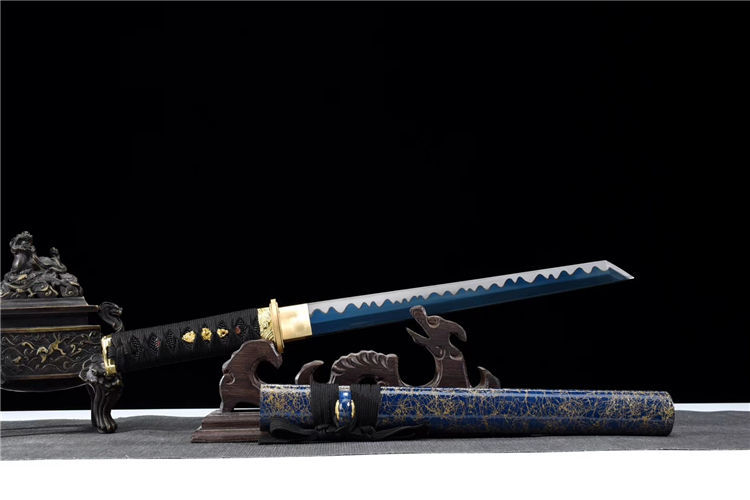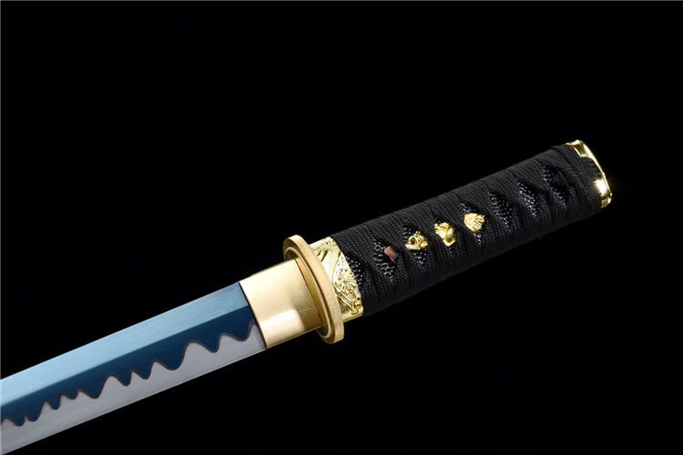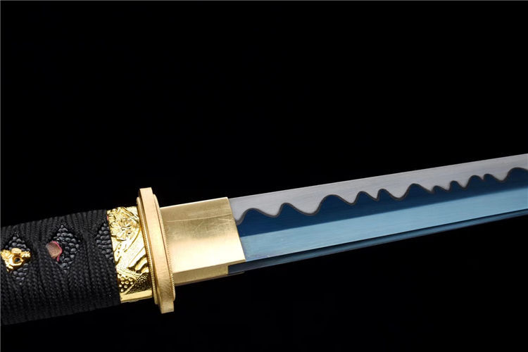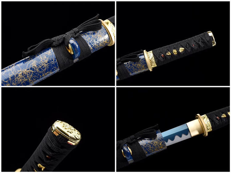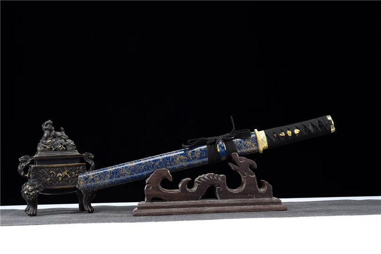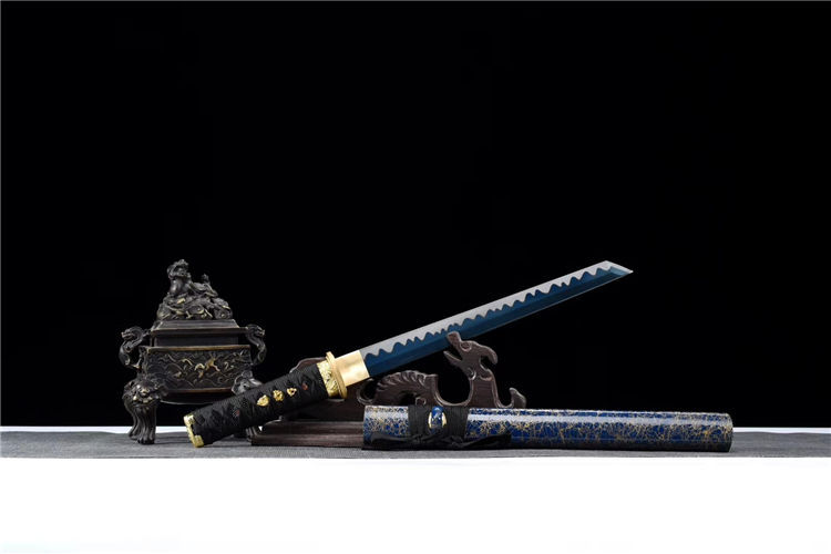 蓝魔助差武士刀 专业测试、请勿模仿 工艺:龙泉古法传统手工艺 装具:铜镡 刃材:猛钢推磨 柄材:实木绕绳 鞘材:实木漆鞘 赠品:锦盒、养护油、布