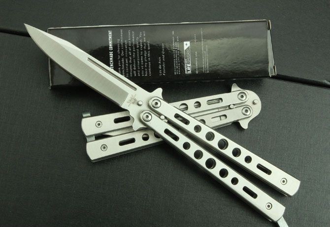 蝴蝶C26B(小号) 全 长:193mm 刃 长:74mm 柄 长:105mm 刃 宽:13mm 刃 厚:2.7mm 刃 材:3Cr13Mov 重 量:112g(含包装) 硬 度:56HRC 表 面:砂光 柄 材:钢柄 锁 型:定锁 其 他:配尼龙套和彩盒