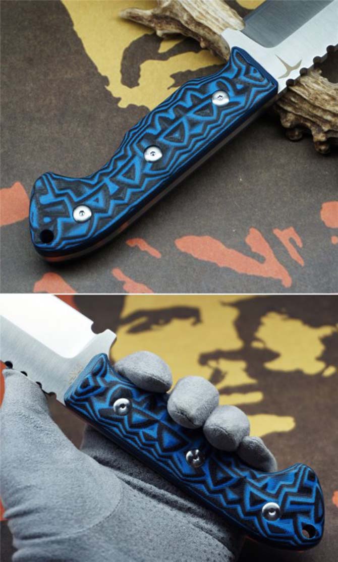 柄材:彩色黑蓝G10(电脑锣凹凸)纹防滑效果
