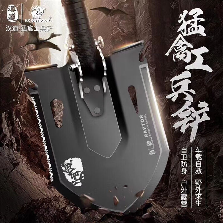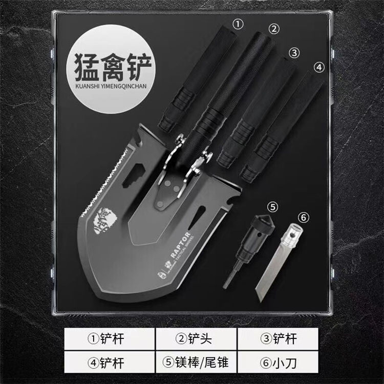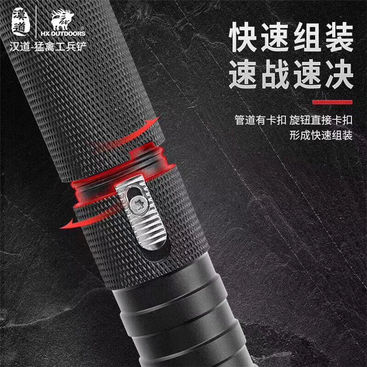 汉道猛禽兵工铲 五档卡位,一秒转换,手柄螺旋直接卡扣,快速组装,铲面升级结合小刀/打火棒/镁棒/哨子/尾锥多种功能,四节手柄,使用更灵活,车载户外必备工具