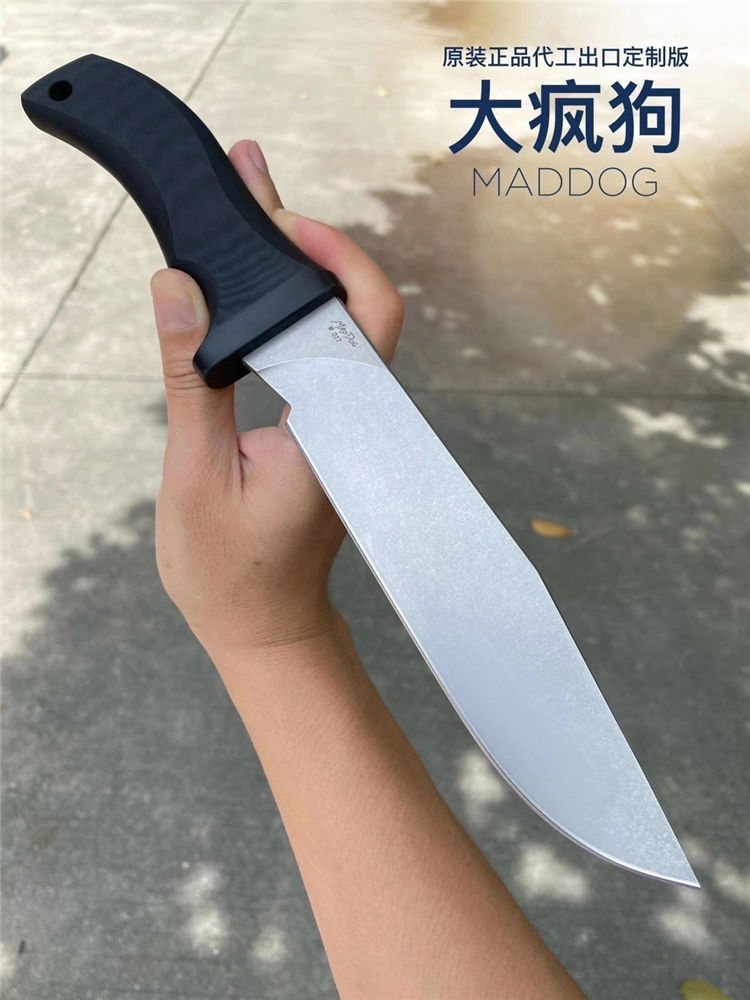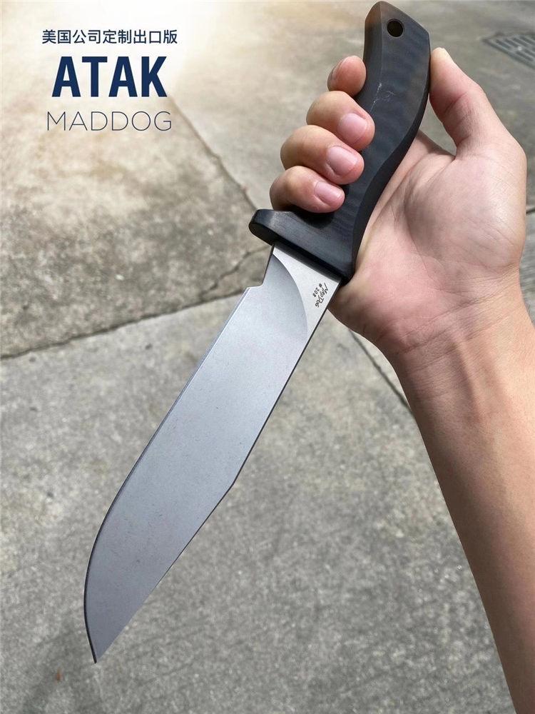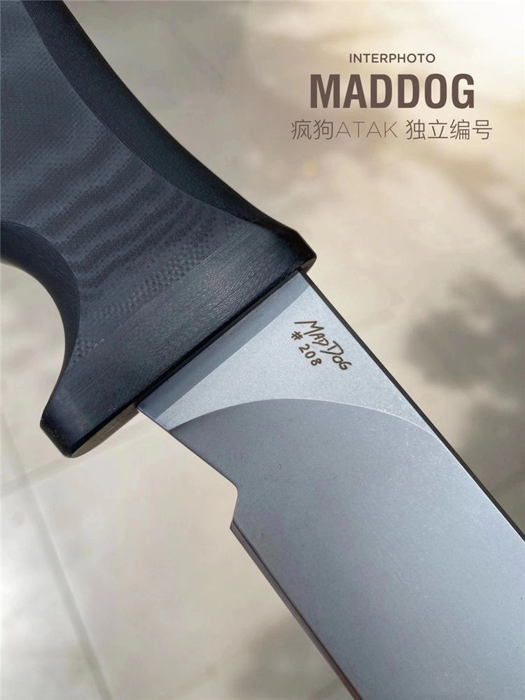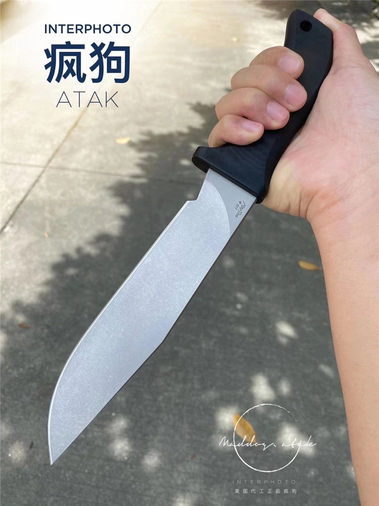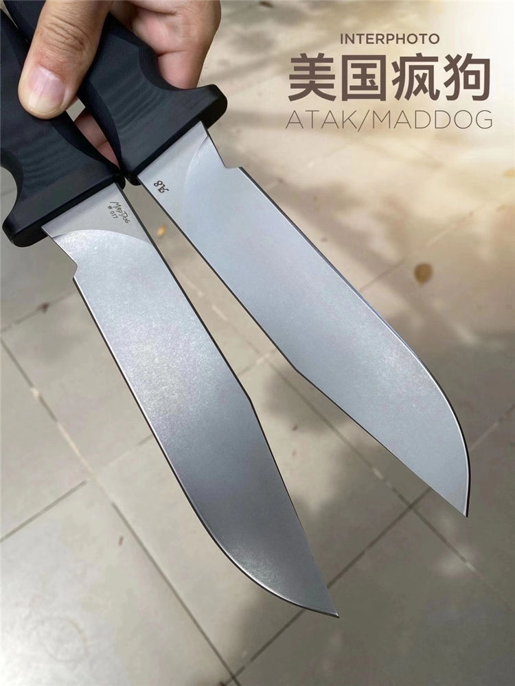 疯狗高级战术突击刀除了完美之外,实在难以找到另一个词汇来形容Mad Dog Knives刀具。而Seal ATAK更可说是Mad Dog Knives的成名刀。在1992年由西岸海豹部队所做的残酷测试中,Seal ATAK是唯一一把通过测试的刀,测试的内容包括将刀夹在两片木片中,由体重约100公斤的海豹队员握住刀柄来做引体向上的动作,结果Seal ATAK毫发无伤