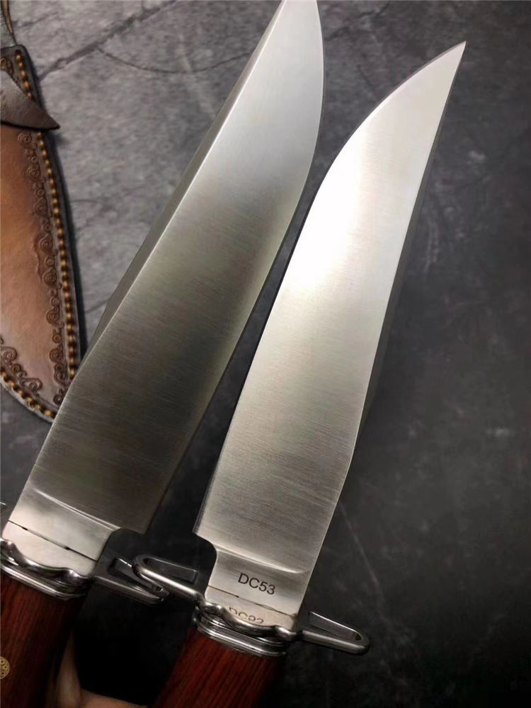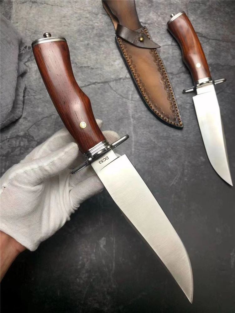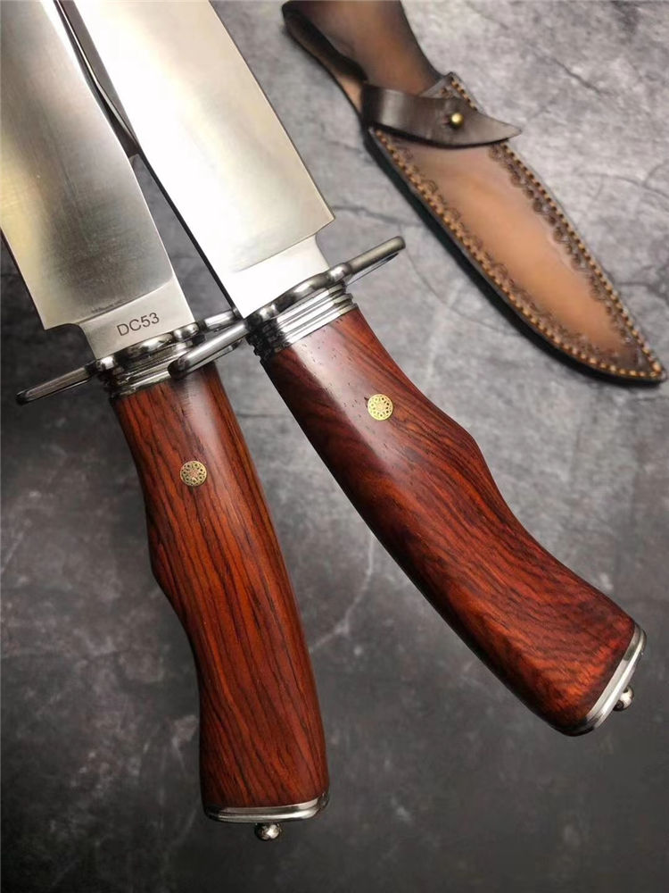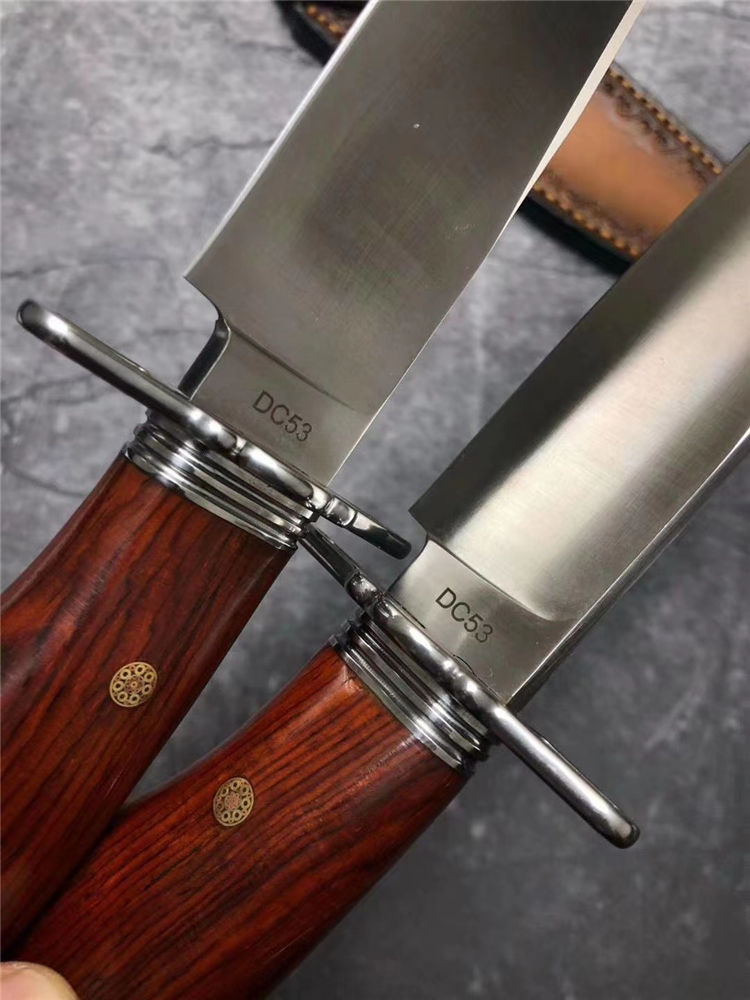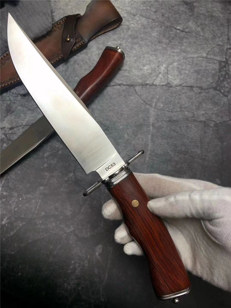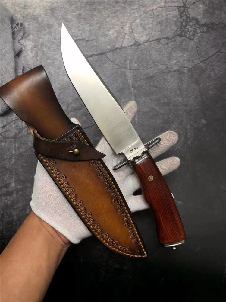 悍士博弈直刀 总长:30cm 刃长:15cm 柄长:14cm 刃宽:3.5cm 厚度:5MM 钢材:DC53 硬度:61HRC 柄材:微粒黄檀木 包装:皮套+盒子