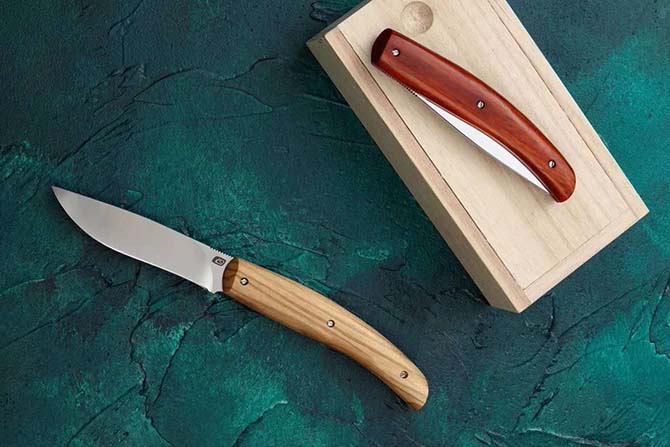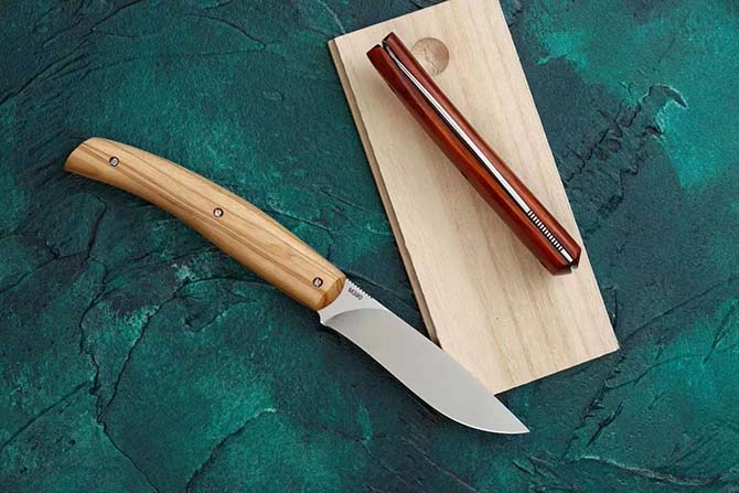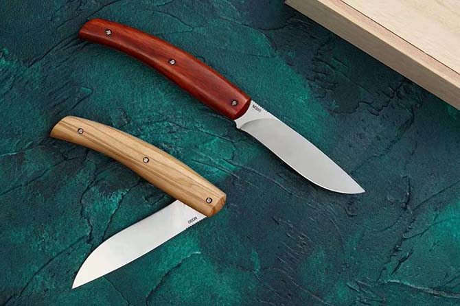 采用日本PVA开刃,锋利度极高!刀柄有小叶紫檀和橄榄木两款