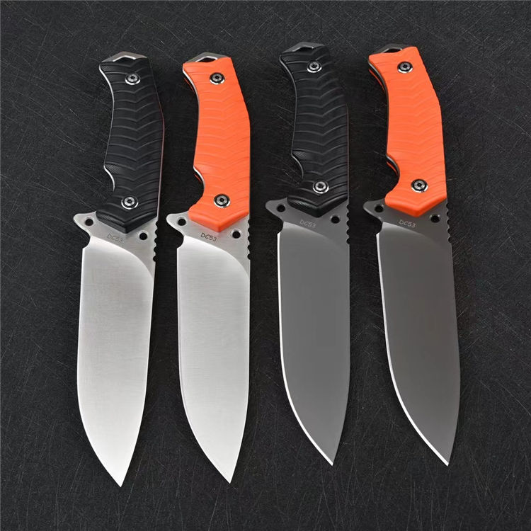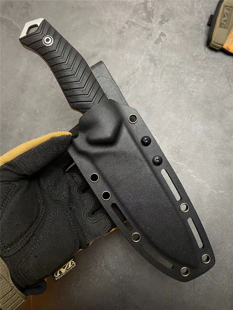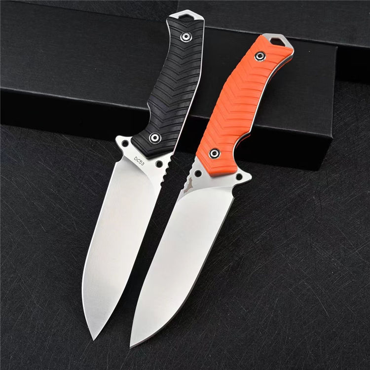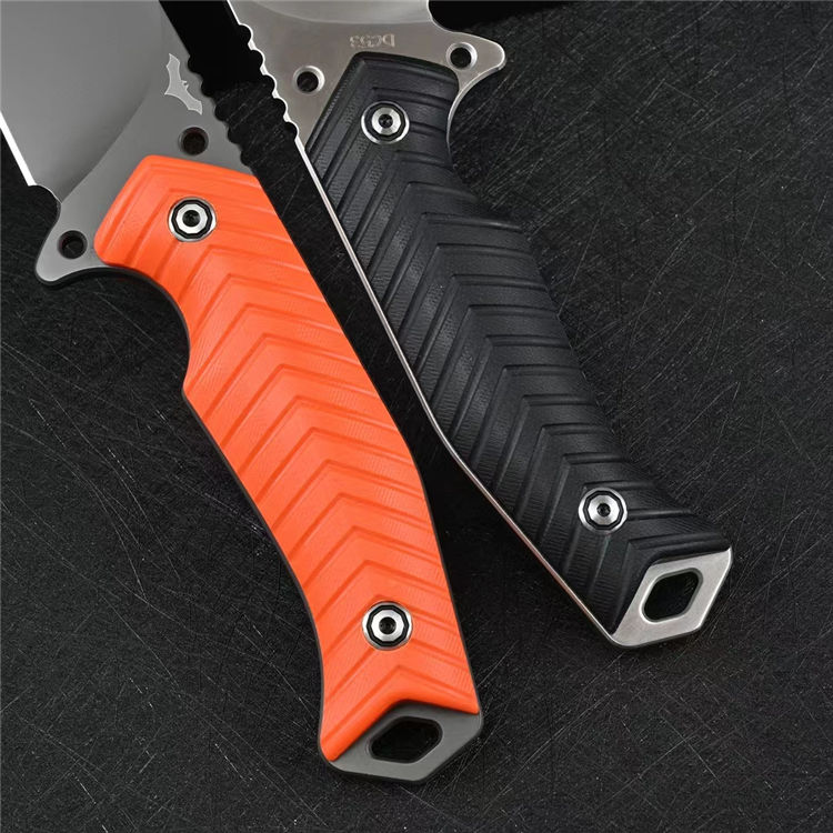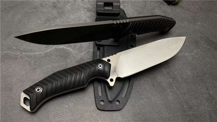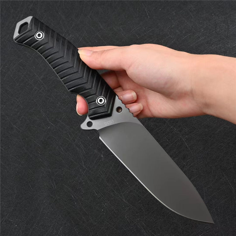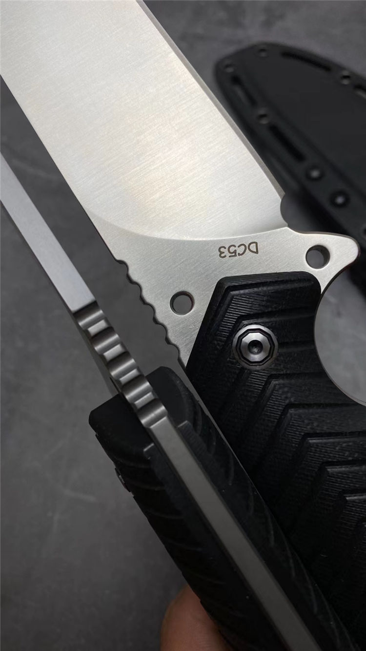 蝙蝠悍将直刀 总长:26CM 刃长:13CM 刃厚:5MM 刃宽:3.9CM 重量:275克(不含K鞘) 钢材:进口DC53模具钢 硬度:60-61HRC,硬度韧性非常好 热处理:真空热处理,3次回火,稳定性能强 柄材:复合G10材质CNC磨箭头纹,防滑手感出色 结构:一体龙骨结构,G10复合材质贴片,强悍牢固 表面效果:砂光效果与灰钛效果 开刃方式:多次开刃 刀套:进口K鞘刀套 包装:黑色礼盒包装
