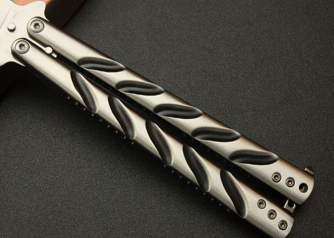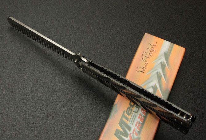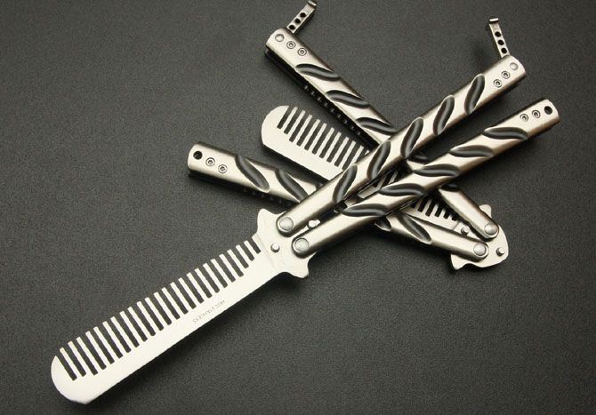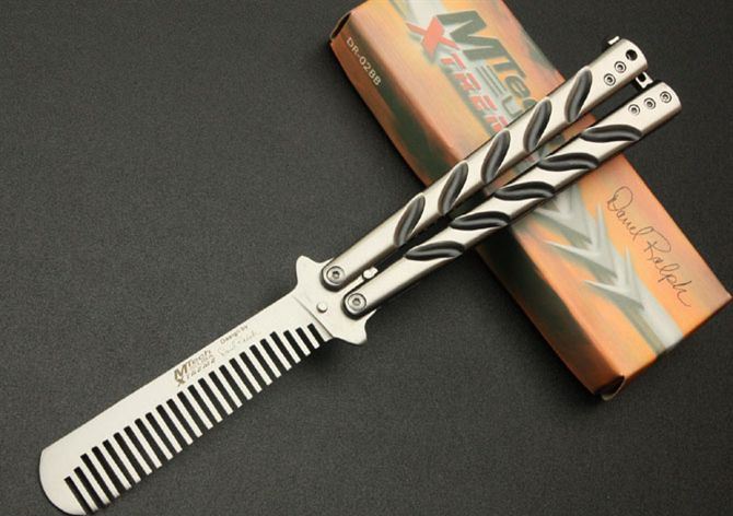 蝴蝶C39梳子刀(全白色) 全长:21.8cm 刃长:8.8cm 刃厚:0.22cm 柄长:12cm 刃宽:2.1cm 刃材:5Cr13MoV 柄材:全金属 硬度:56HRC 重量:160克 表面处理:砂光