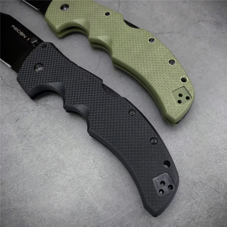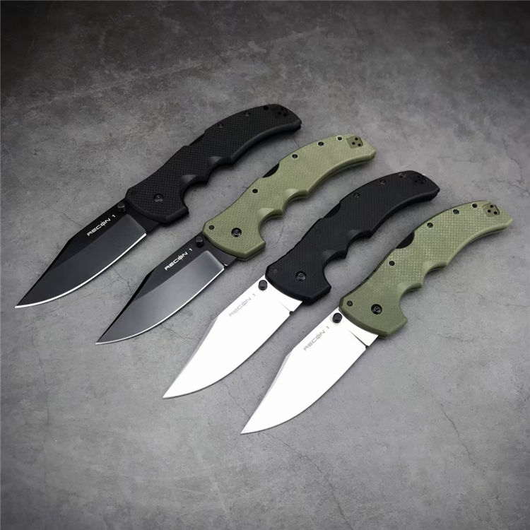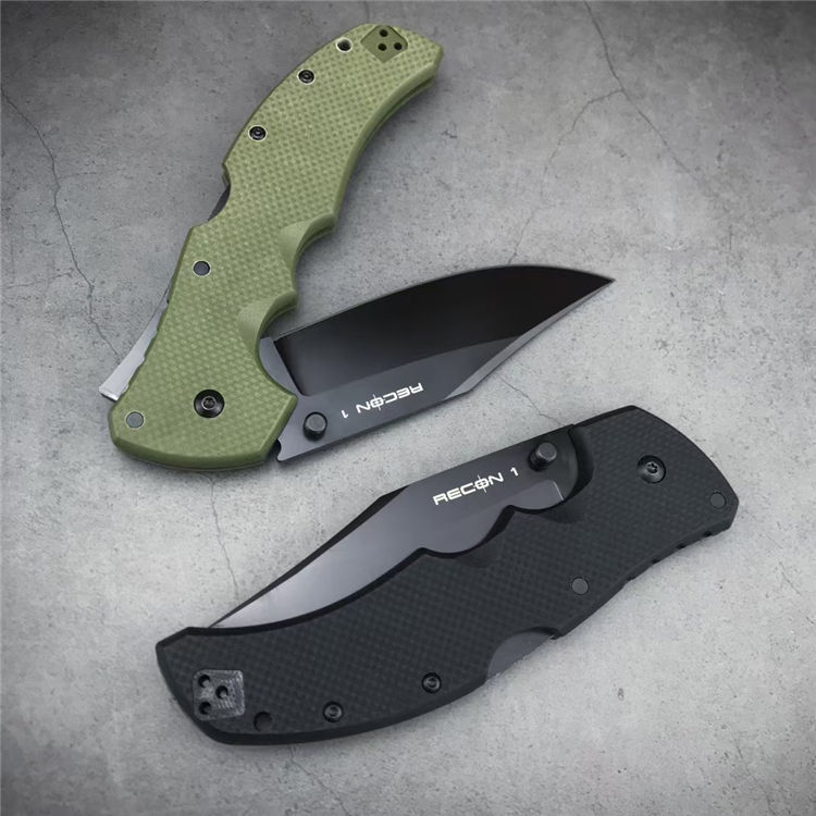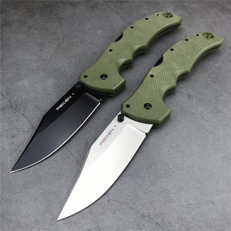 冷钢侦察兵系列折刀 品牌:冷钢 货号:RECON1 结构:超级背锁 全长:232mm 刀刃钢材:S35VN深冷热处理表面镀黑钛和极致拉丝两种处理 刀刃硬度:58-60HRC 刀刃厚度:4.0mm 刀刃长度:91mm 手柄长度:135mm 手柄材料及处理:三维加工黑色和绿色G10 口袋夹:黑色不锈钢口袋/皮带夹 重量:156g 彩盒包装