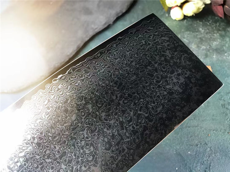 钢材:台湾公司提供VG10锻造大马士革钢103层,真空热处理