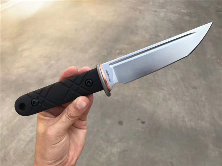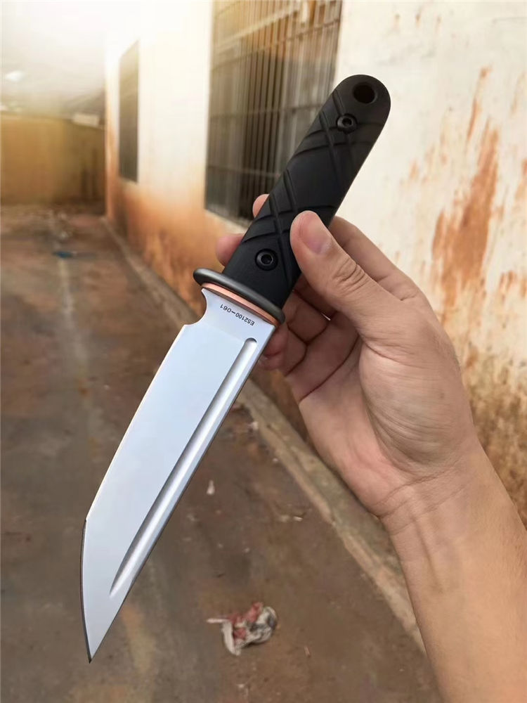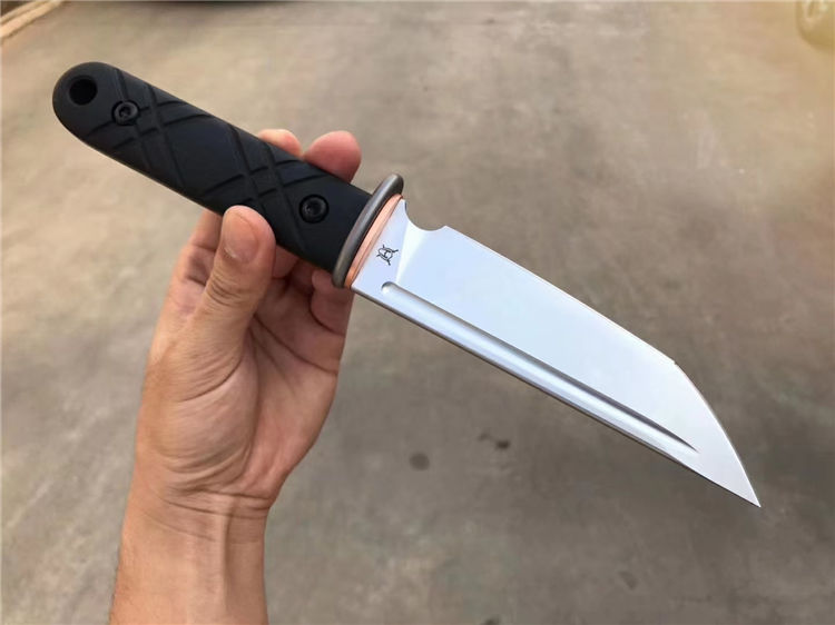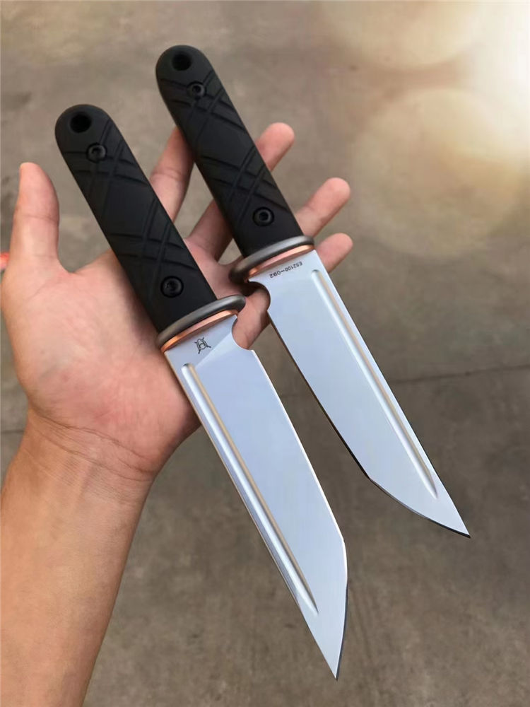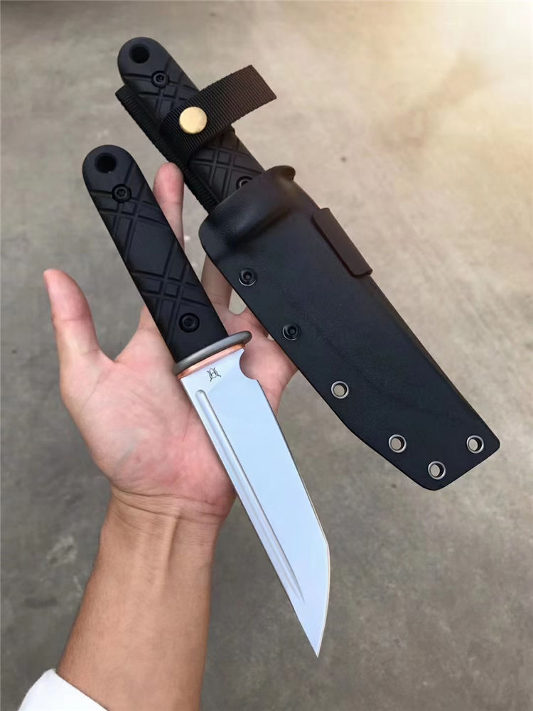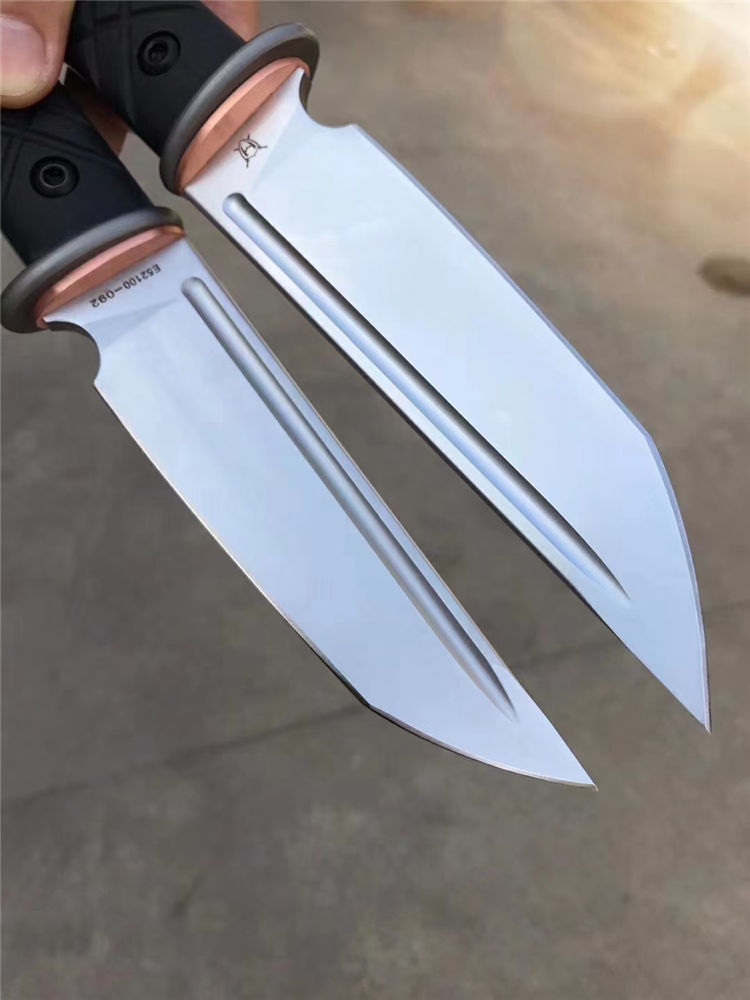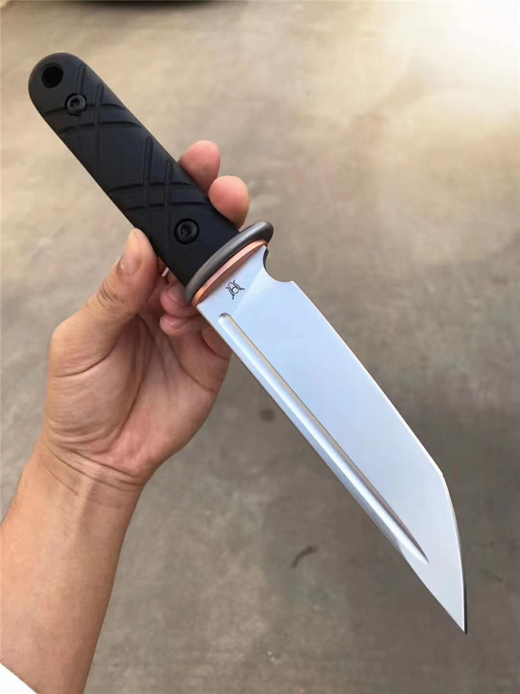 战狼武士直刀 刃材:E52100(电渣钢) 全长:275MM 刃长:146MM 柄长:129MM 刃最宽:49MM 刃厚:5MM 硬度:59(三刃热处理,韧性比较好) 护手TC4钛合金加紫铜配件,刀条手柄部份退火处理 手柄:G10,全包手柄精车锣丝 净重:298g