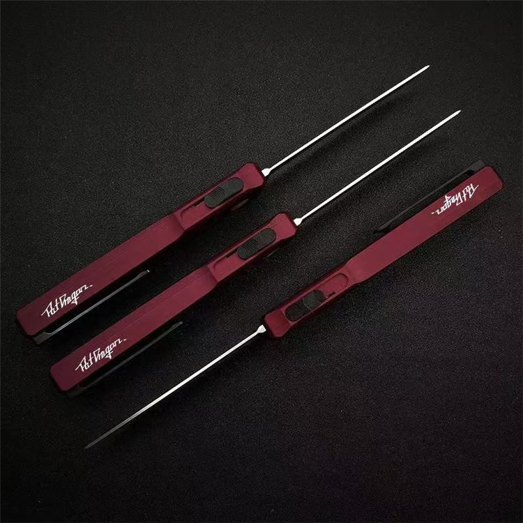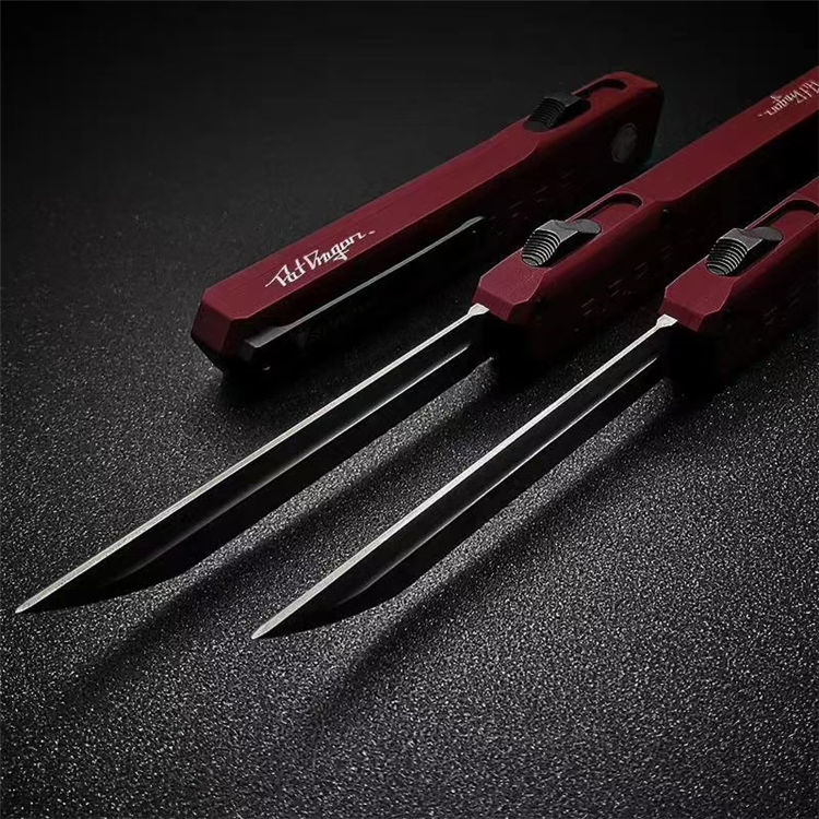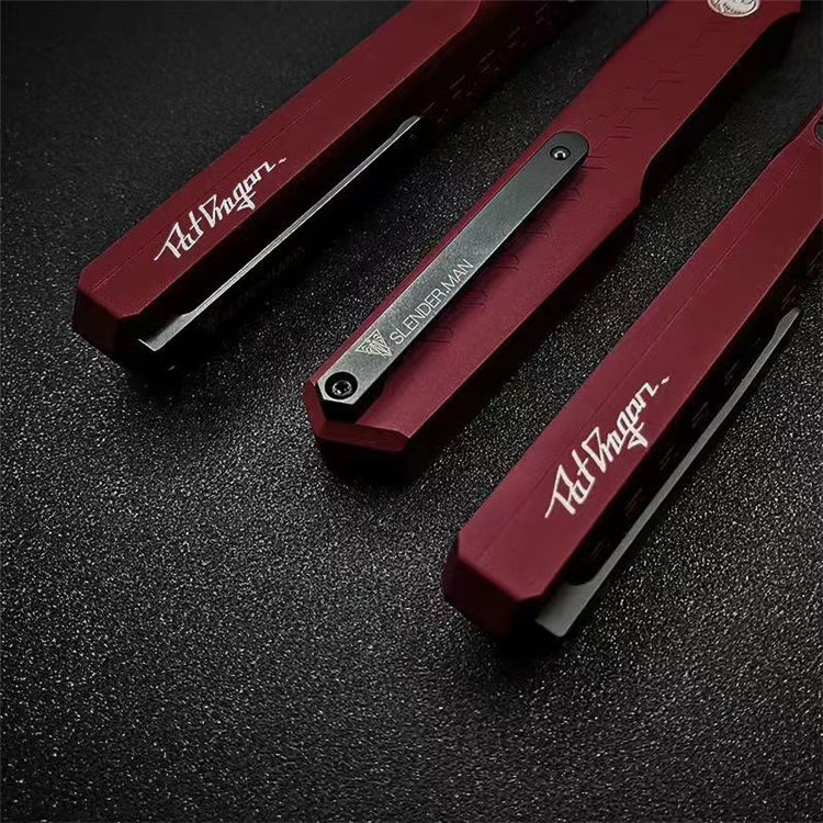 Slenderman/SLM直出跳刀 全长:20.5cm 刀刃:8.5cm 手柄:12cm 刃厚:0.32mm 手柄:航空铝T6-6061 柄面处理:硬质氧化 刃材:D2(真空热处理) 硬度:60HRC 背夹:钛合金TC4+陶瓷珠 重量:62g 包装:防水刀包