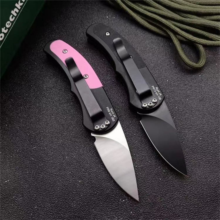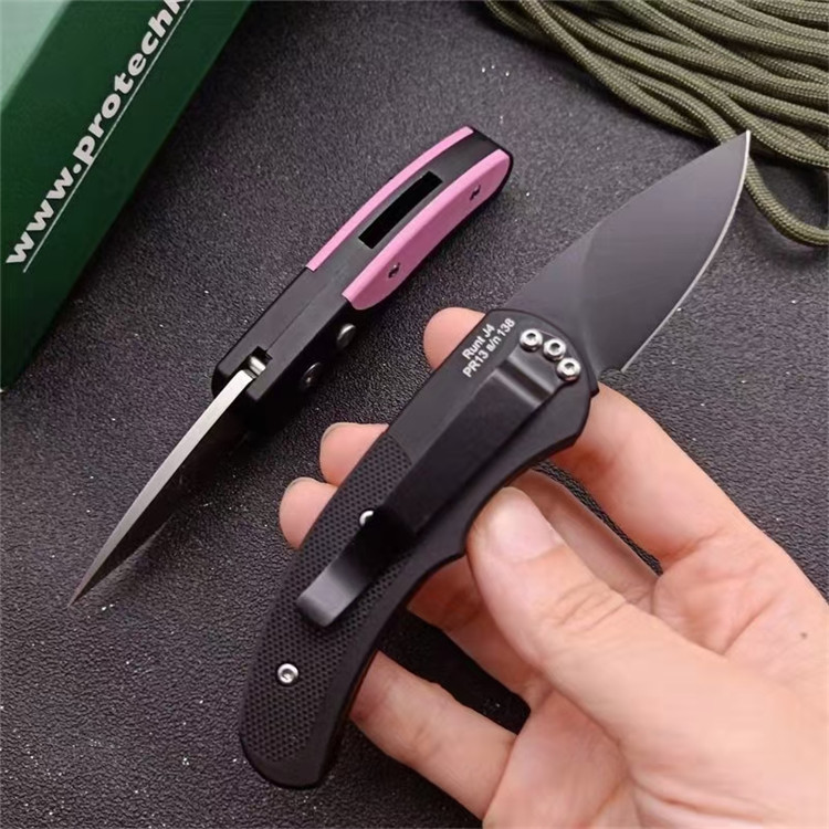超技术鲁特迷你侧开跳刀 型号:RuntJ4 类型:PTF AUTO侧跳刀 全长:134mm 刃厚:3mm 刃长:50mm 柄长:89mm 刃材:154-CM 硬度:59-60HRC 柄材及处理:T6航空铝+G10全CNC加工 净重:63 重量:95(含包装) 背夹:420J钢 包装:原装彩盒