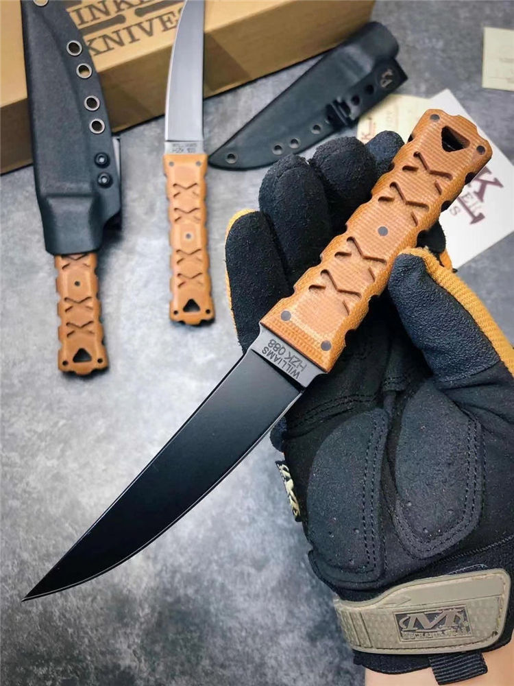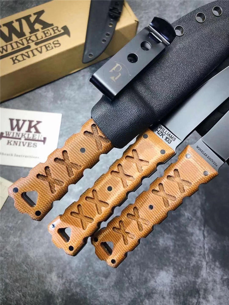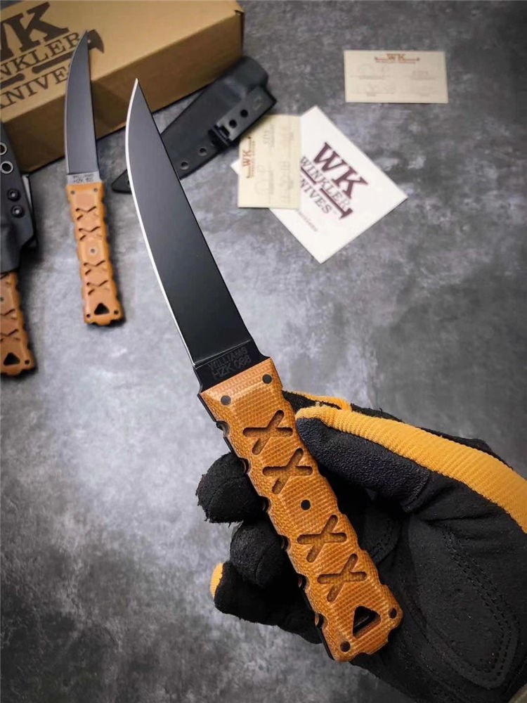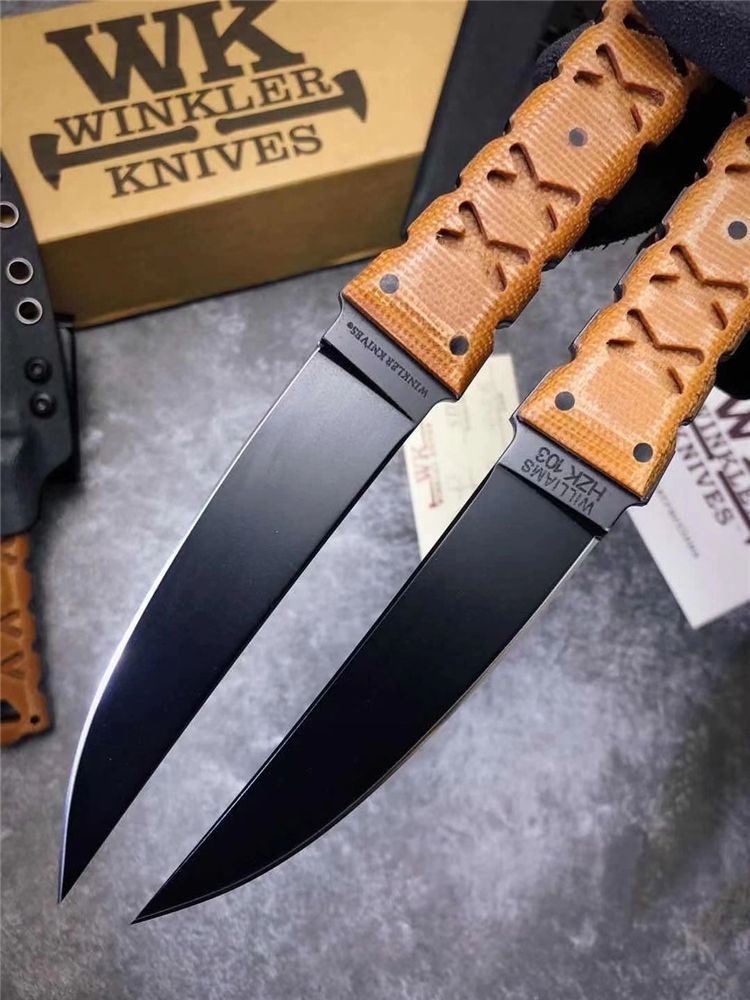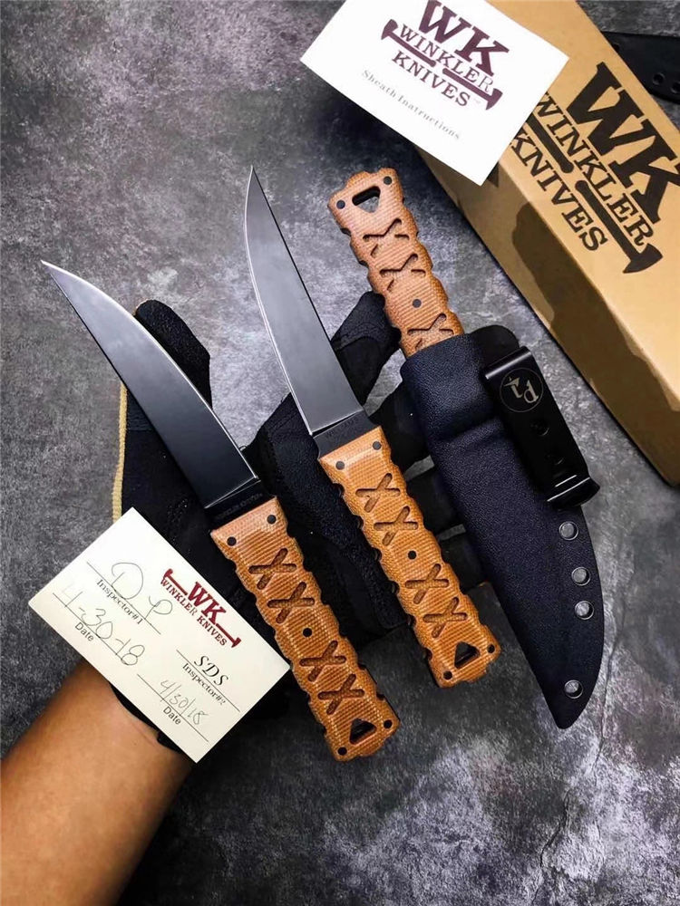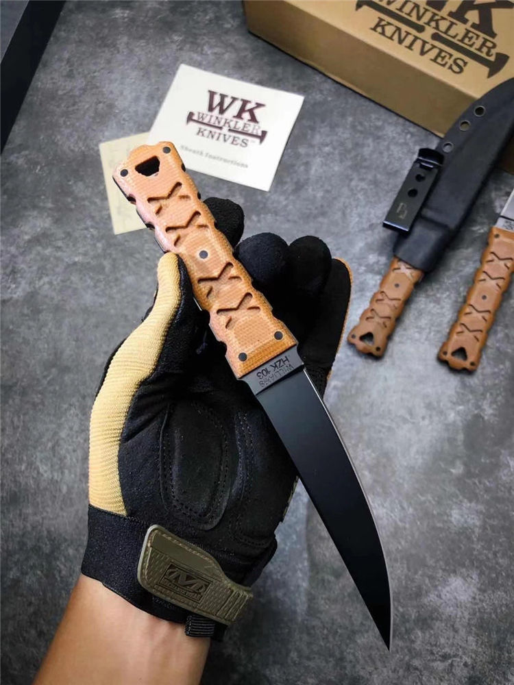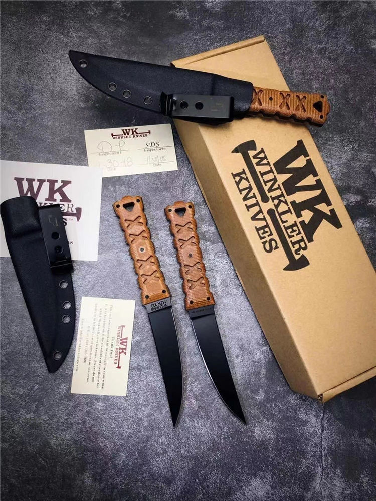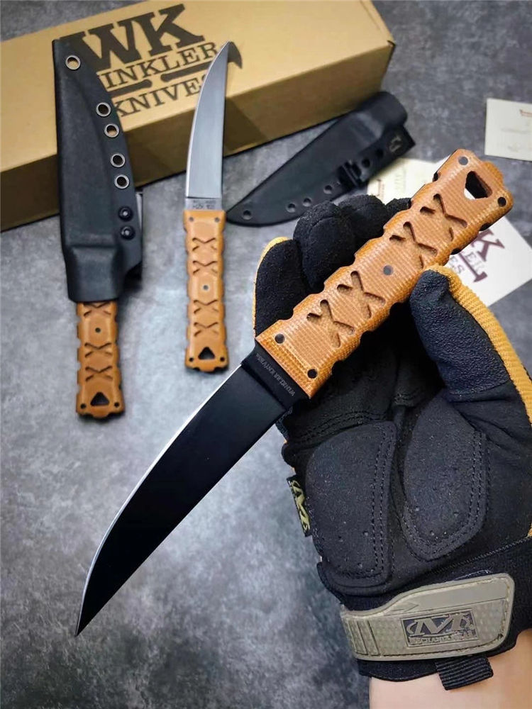 代工版M2钢温克勒直刀 总长:22cm 钢厚:0.4MM 钢材:M2高速钢 硬度:65HCR、黑色哑光涂层,经典的O-Tanto刃型,强大的切割性能和穿透能力 手柄:3D纹路亚麻材料制作柄,耐磨防滑,整刀日本武士风格浓厚,经典的设计,经过无数实战验证