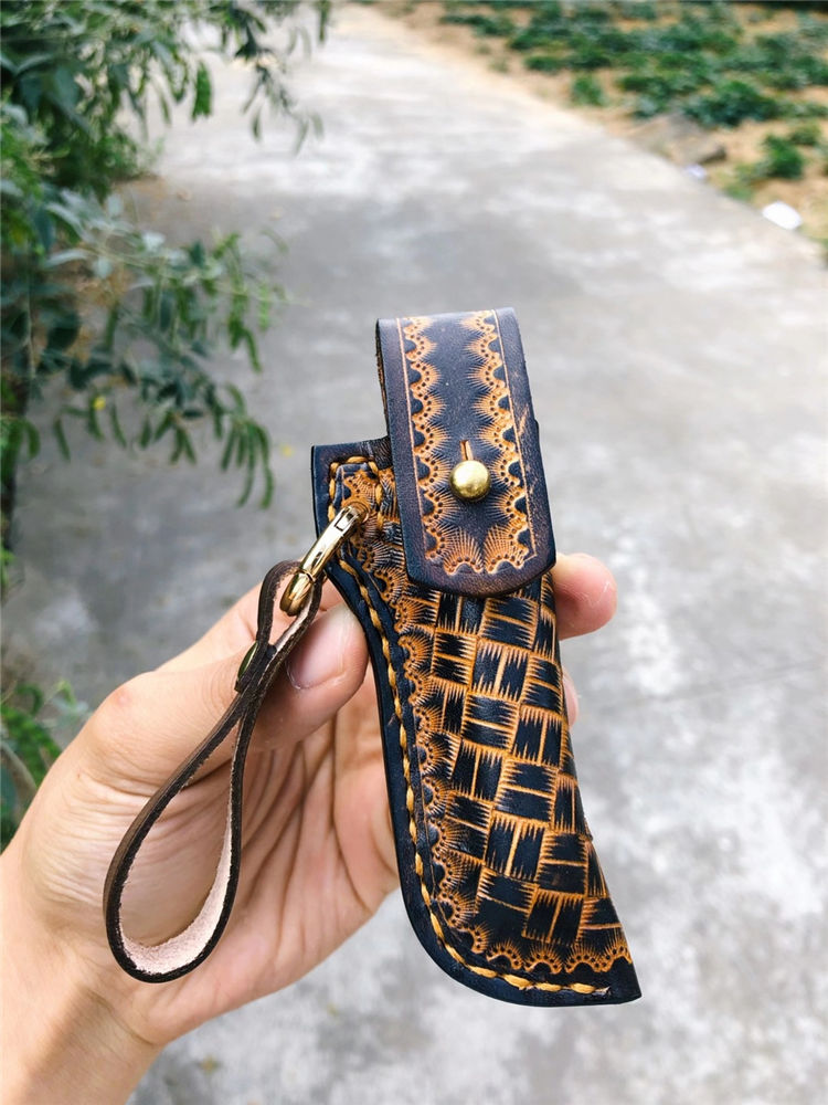 刀套:纯手工意大利进口手工雕骷髅头手工缝线植鞣皮