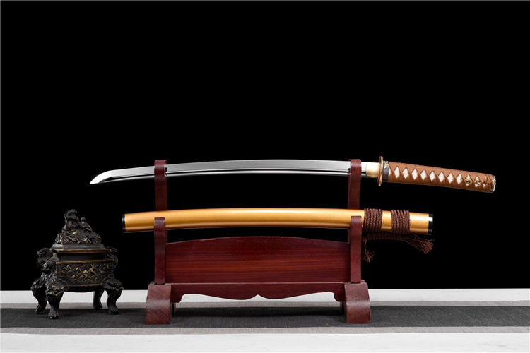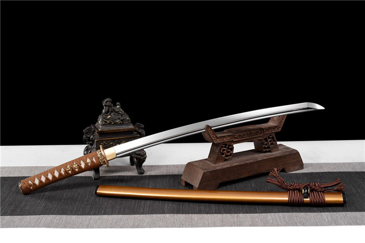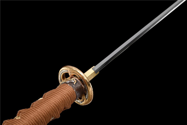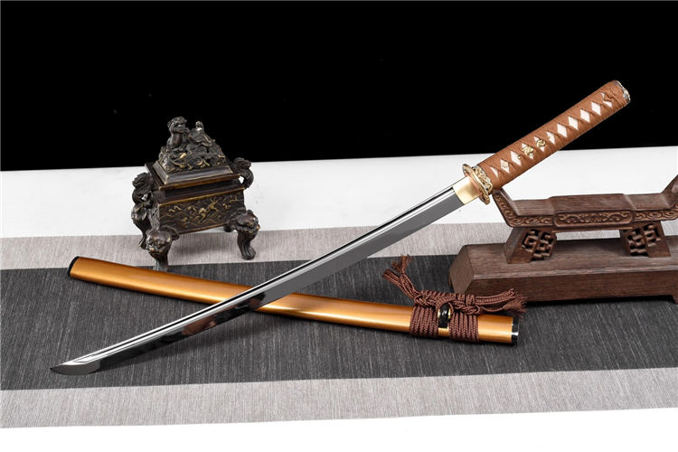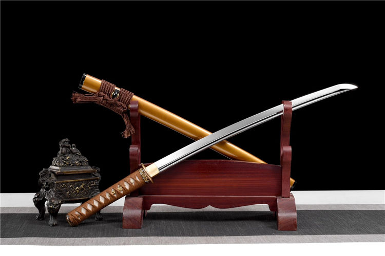 龙吟武士刀(非量产) 长:77cm 重:0.7kg(少许误差) 刃:硬质合金钢(真横手) 装:铜底鎏金银套装 柄:鱼皮棉绳卷柄(可拆装) 鞘:牛角黄闪光漆鞘(真丝下绪) 赠:礼盒、礼袋、养护套装