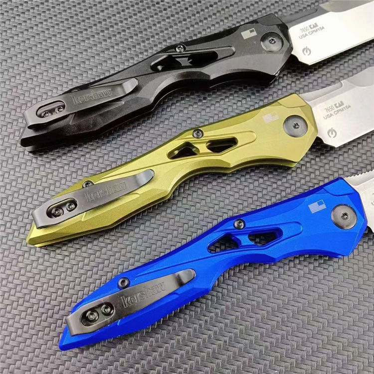 卡秀7650侧开跳刀 全长:20cm 刃长:8.3cm 刃厚:0.3cm 刃材:CPM-154 柄材:航空铝 总重:68g 表面:高强度氧化黑 工艺:刀身采用精准的数控水磨处理 手柄:整体采用数控电脑逻(CNC)线条处理