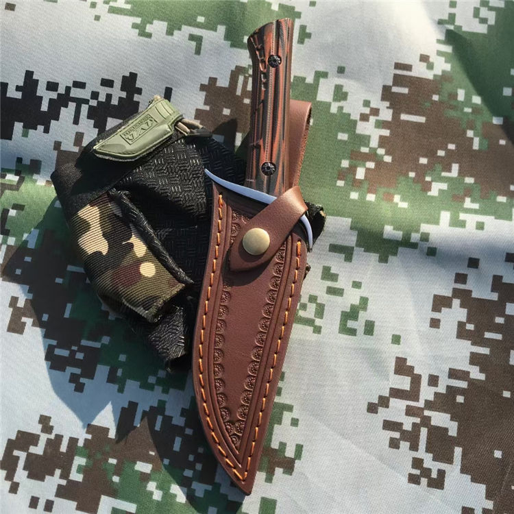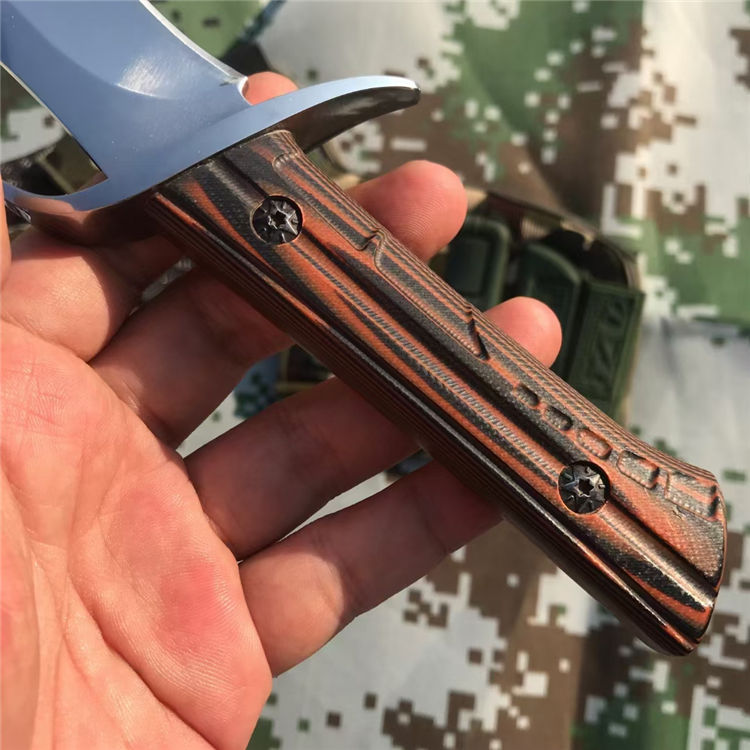使者博伊直刀 全长:24.2CM 刃长:13.5CM 刃材:7CR13 表面处理:镜面抛光 刃宽:2.8CM 刃厚:0.4CM 柄长:10.1CM 柄材:双色G10 重量:286克 配:刻花皮套