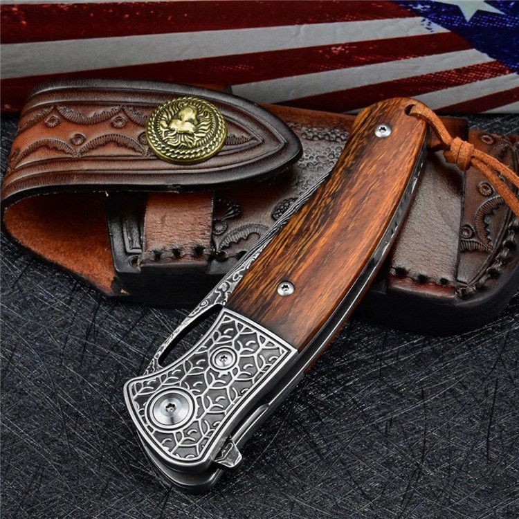 柄材:3D精雕440C钢头+进口沙漠铁木