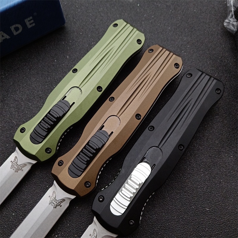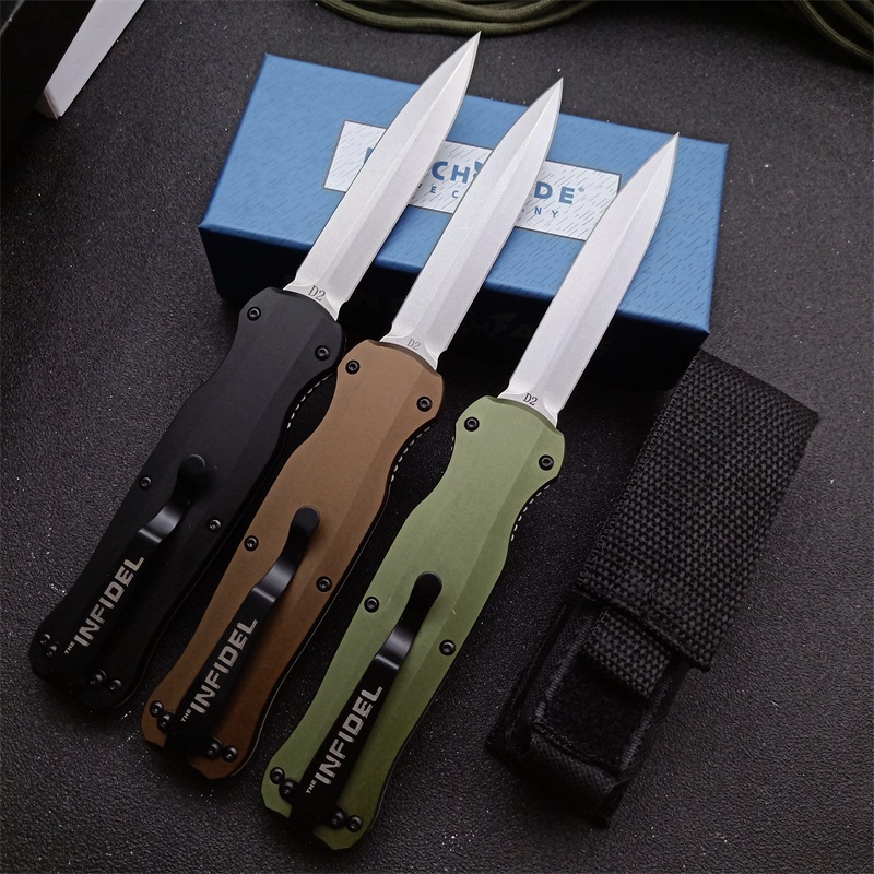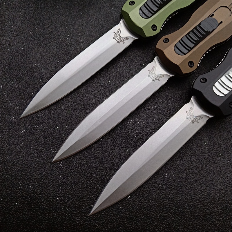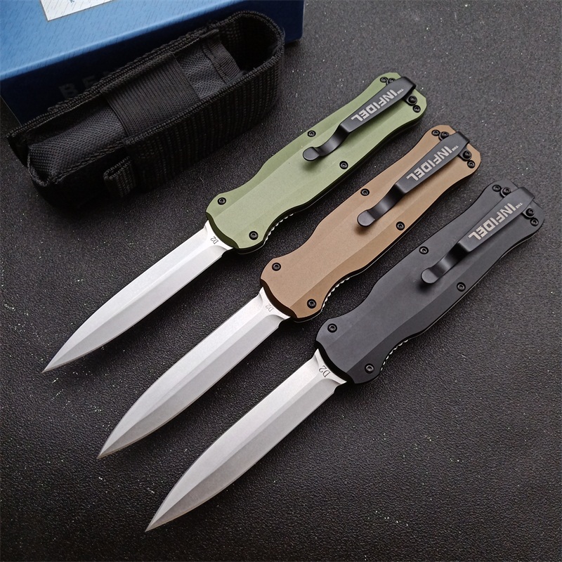 蝴蝶3320直出跳刀 品牌:蝴蝶3320 全长:22.5cm 刃长:9.8cm 刃厚:3.2mm 刃材:D2 硬度:58HRC 重量:220克(含包装物) 表面:石洗(刀刃) 锁闭:弹簧直出 柄才:6061铝材经CNC电脑锣成型,极度精密 刀鞘:尼龙