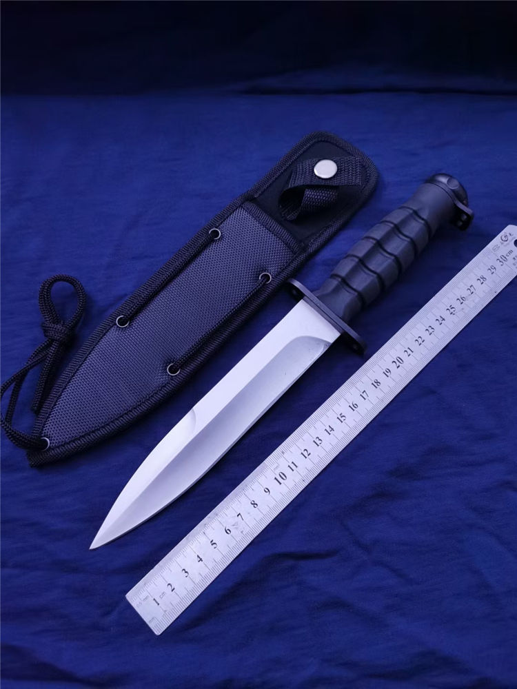 战神剑 全长:30CM 刃长:17CM 刃材:5CR13 表面处理:镜面抛光 刃宽:3.2CM 刃厚:0.4CM 柄长:11.5CM 柄材:ABS纤维塑料 重量:300克 配:尼龙套