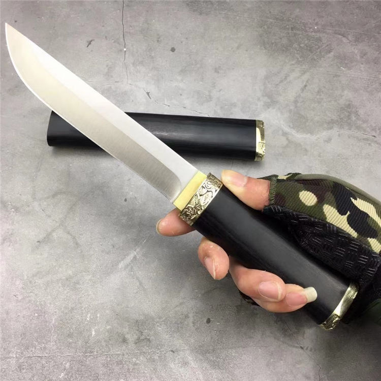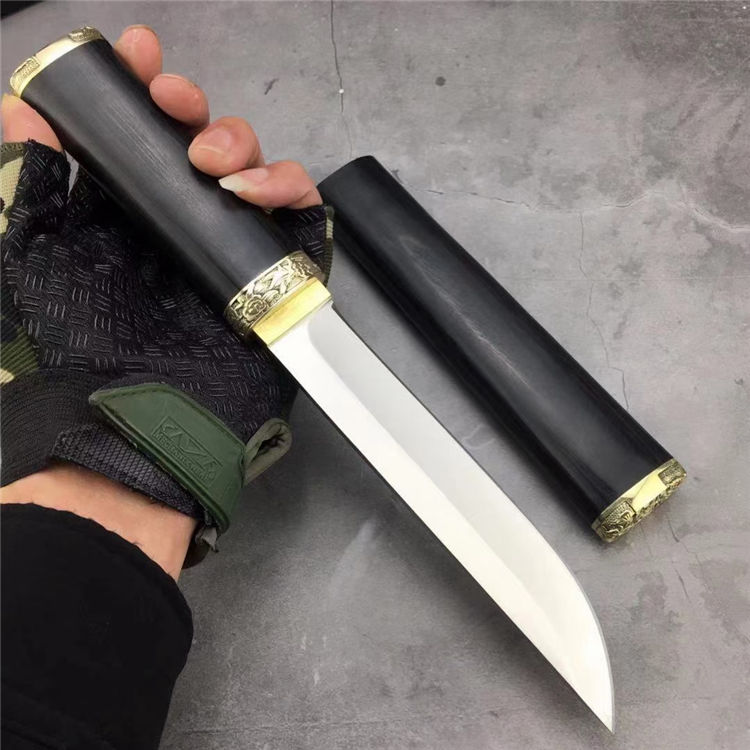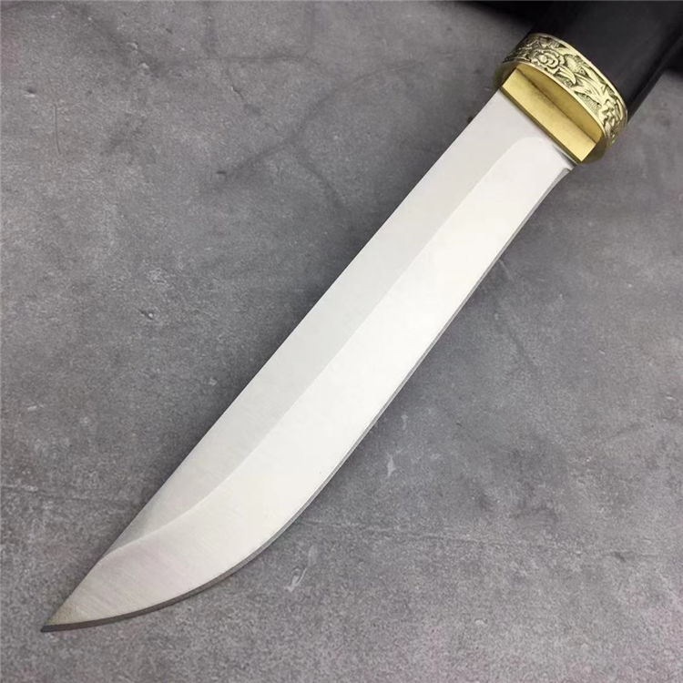 全刀带有钢头雕花,是户外爱好者和把玩的热爱