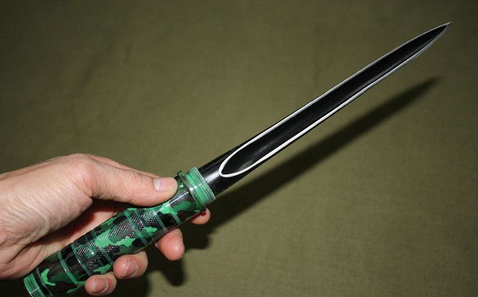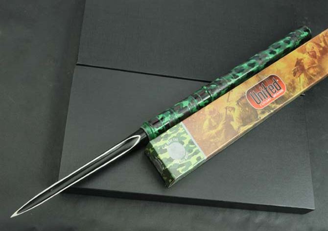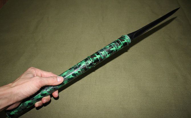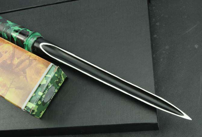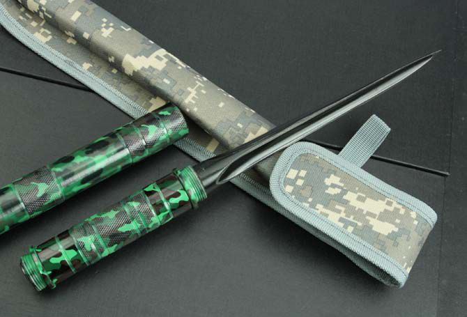 迷彩小管三棱(只供收藏) 全 长:570mm 刃 长:190mm 柄 长:330mm 刃 宽:20mm 刃 厚:20mm 刃 材:3Cr13Mov 重 量:610g(含包装) 硬 度:55HRC 表 面:氧化黑 柄 材:钢柄 锁 型:三棱军刺 其 他:配彩盒和尼龙套