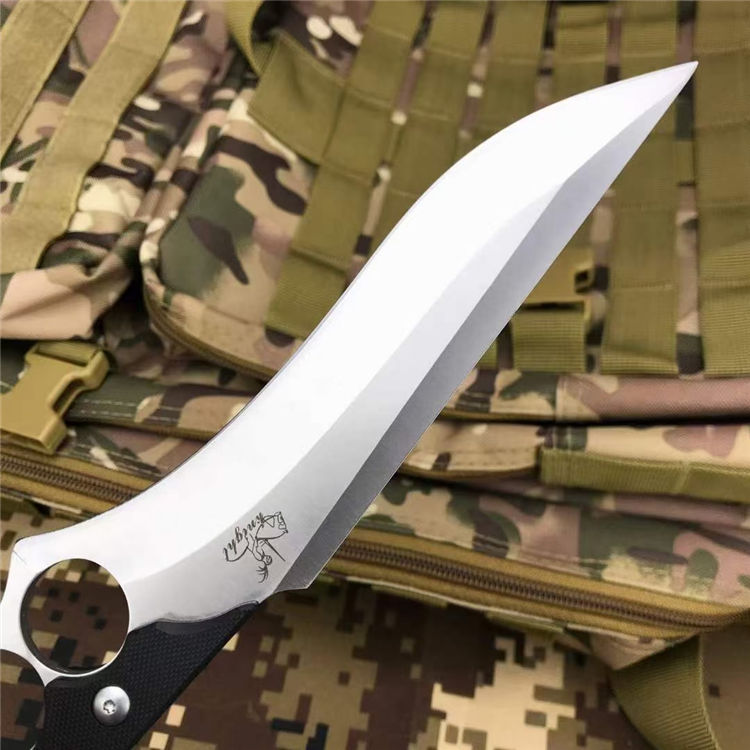 迷你版牧马人直刀 全长:28.5CM 刃长:17CM 柄长:约14CM 刀厚:0.25CM 刃材:砂光 净重:184克 钢材: 9cr18mov钢 硬度:59HRC(真空油冷热处理) 柄材:G10高硬度纤维柄 包装:尼龙套