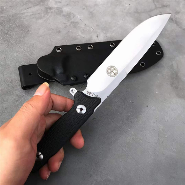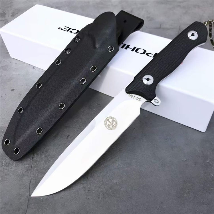 波尔武力MK4战斗刀 总长:270mm 刃长:140mm 厚度:4mm 重量:512克 刃钢:Niolox 表面:缎面 柄材:G-10 护套:Kydex带有携带系统包括 配件:Kydex护套,带有携带系统,挂绳