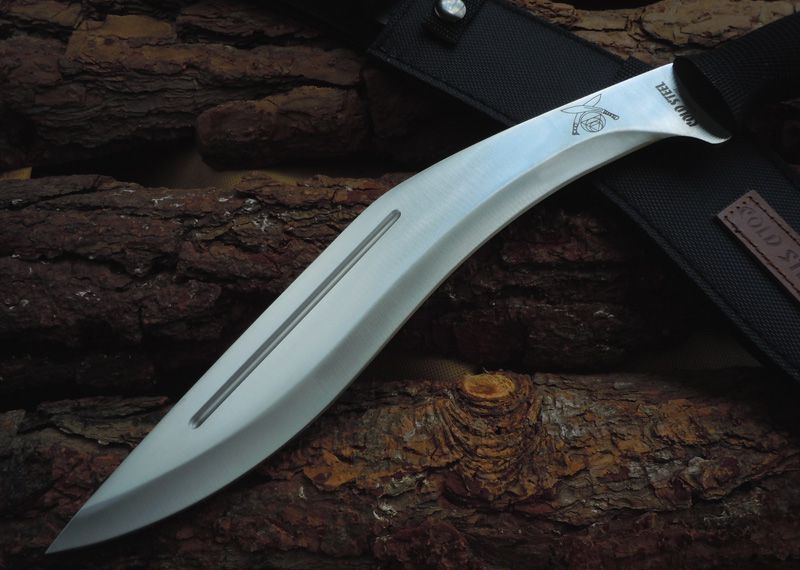 冷钢狗腿3号(白色) 全 长:438mm 刃 长:290mm 柄 长:128mm 刃 宽:50mm 刃 厚:4mm 刃 材:5Cr13Mov 重 量:610g(含包装) 硬 度:56HRC 表 面:砂光和氧化黑 柄 材:ABS 锁 型:定锁 其 他:彩盒+尼龙套