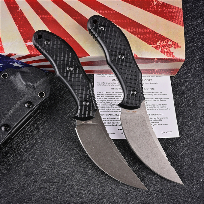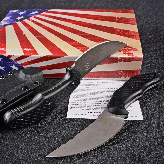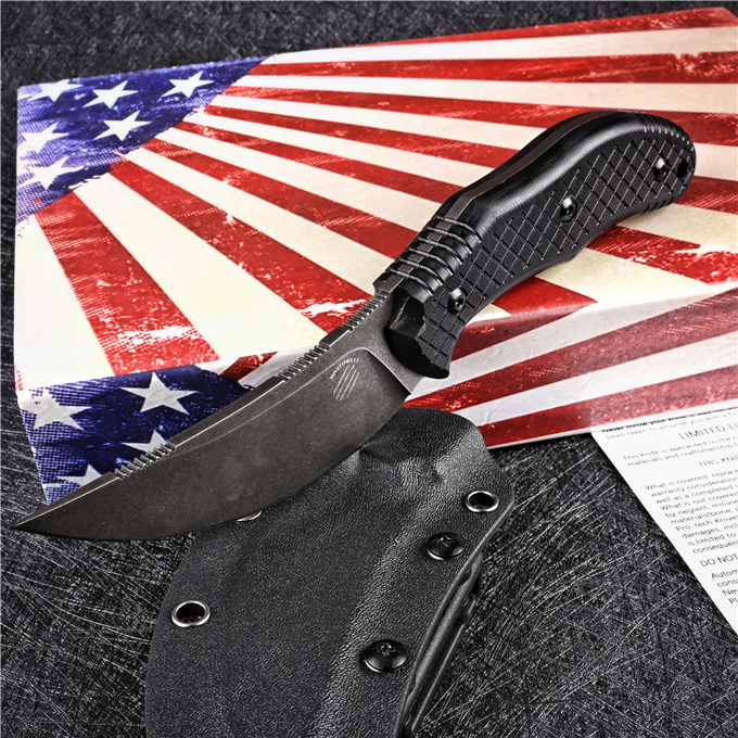 M390巴斯蒂内利直升机直刀 全长:22CM 刃长:10.5CM 柄长:12CM 刃厚:0.4CM 刃宽:3.3CM 钢材:M390粉末钢 刀套:K鞘 柄材:黑色G10 表面:CNC数控磨石洗处理 硬度:61--62HRC(真空油冷热处理) 类型:以削.刺.锋利.韧性保持度最好 开刃方式:二次开刃 净重:218g 重量:415g(含刀套和盒子)