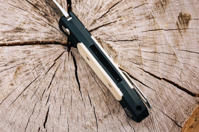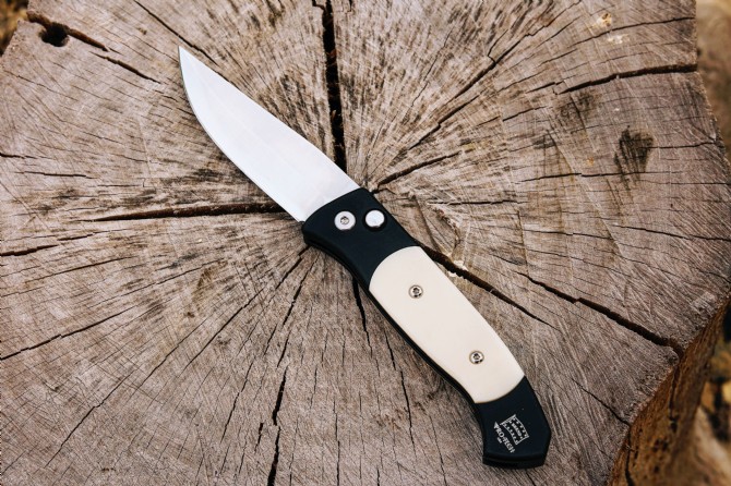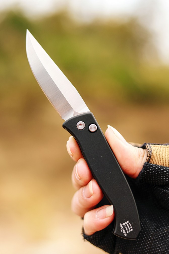 超技术MP5侧开跳刀 全长:16CM 刃厚:3mm 刃材:9CR14 刃长:7CM 硬度:60-62 柄材:太空铝(镶仿贝) 重量:250g