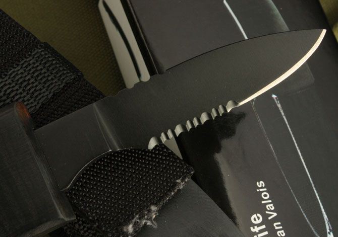 皮带全长:136cm 刀刃长:6cm 刃宽:2cm 刃厚:0.4cm 刃材:420 硬度:54HRC 表面:电泳黑 柄材:原木 柄长:9.6cm 重量:300克(含包装物) 其他: 半齿开锋 品质:高品质,出口转内销 包装:原装包装 每套包含:尼龙带一条,小刀一把,活动夹子一个 使用方法:先根据自身的腰围用活动夹子固定好,再将皮带头的扣子扣住夹子上的圆孔
