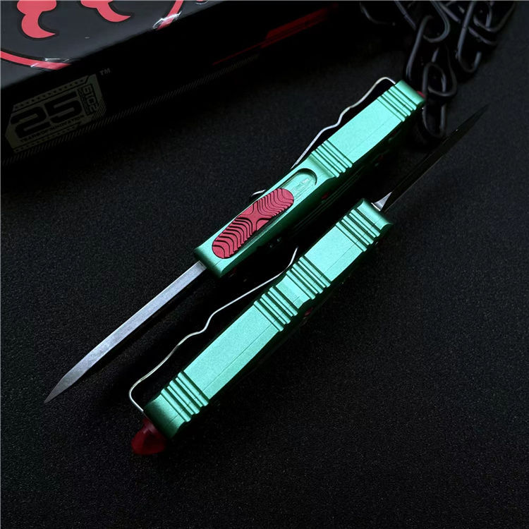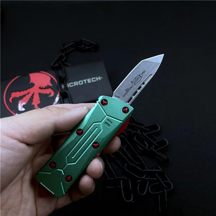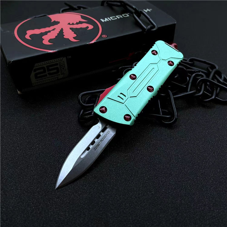 微技术迷你赏金猎人直出跳刀 全长:140mm 刃长:50mm 刃厚:3.2mm 刃材:D2 硬度:58-60HRC 柄材:航空铝(T6-6061) 柄厚:110mm 螺丝:数控电脑锣刃 角度:61°(>61°)