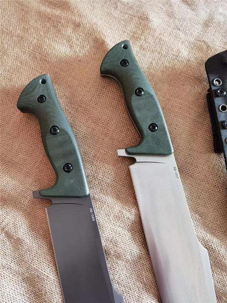 刀刃表面:精细镀灰钛和砂光两种,镀钛工艺是一种表面防锈作用的效果,采用真空加工。把色块的颜色附着在刀具上,A8属于高韧性模具钢,韧性和强度优秀,通常用作大型裁纸刀具,划木刀具和锯子