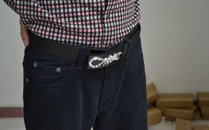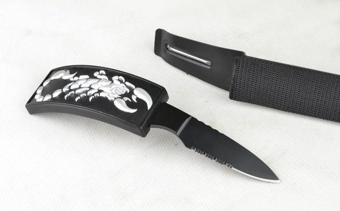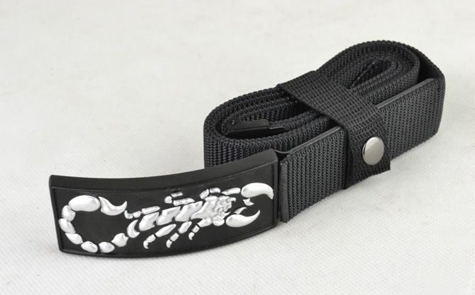 MASTER.蝎子皮带刀 皮带全长:140cm 刀刃长:6cm 刃宽:2cm 刃厚:0.38cm 刃材:420 硬度:54HRC 表面:氧化 柄材:合金 柄长:9.6cm 重量:281克(含包装物) 其他: 半齿开锋 品质:高品质,出口转内销 包装:原装包装 每套包含:尼龙带一条,小刀一把,活动夹子一个 使用方法:先根据自身的腰围用活动夹子固定好,再将皮带头的扣子扣住夹子上的圆孔